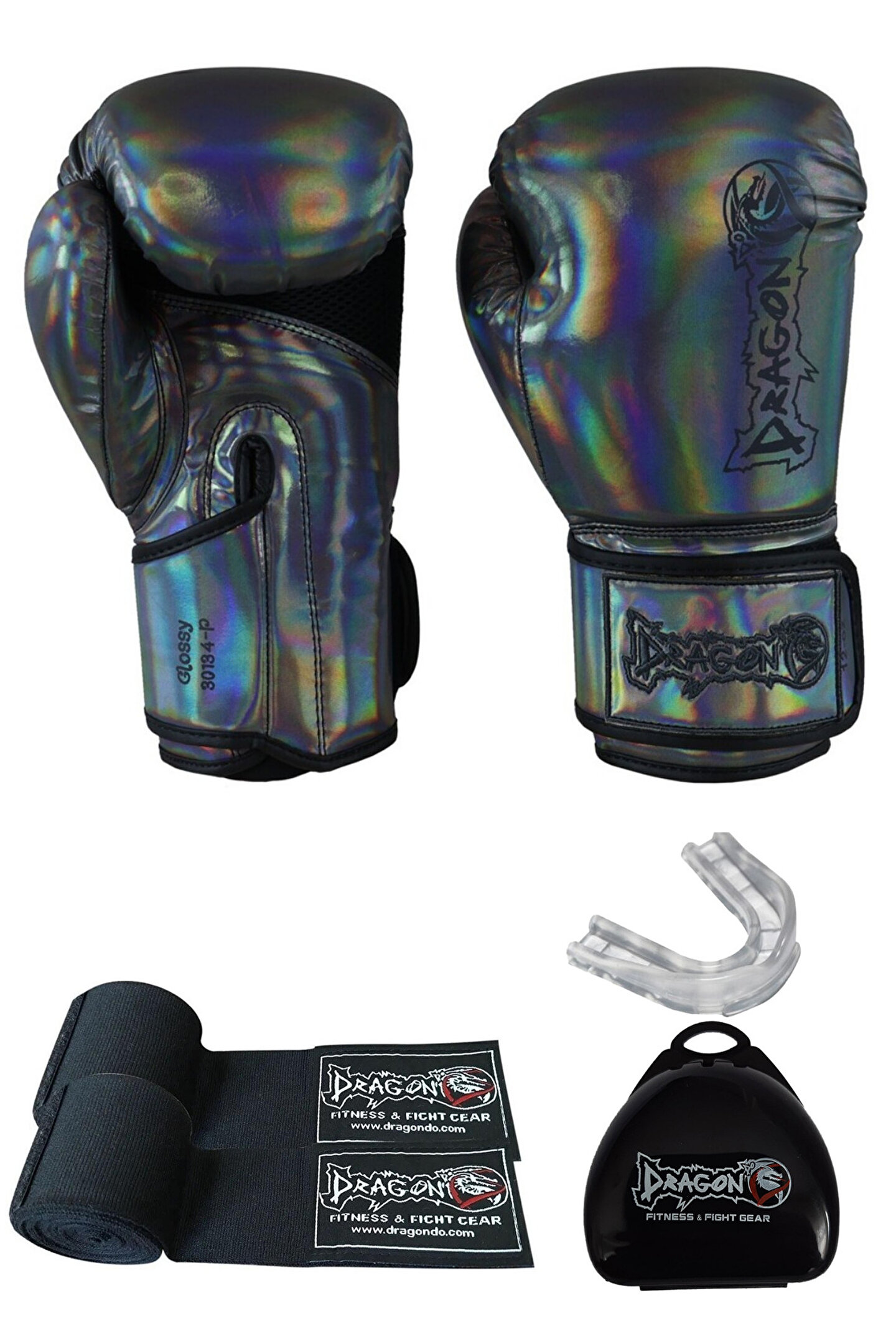 Dragondo Dragon Glossy Kick Boks Eldiveni Muay Thai Müsabaka ve Antreman Eldiveni Bandajlı 3lü Set