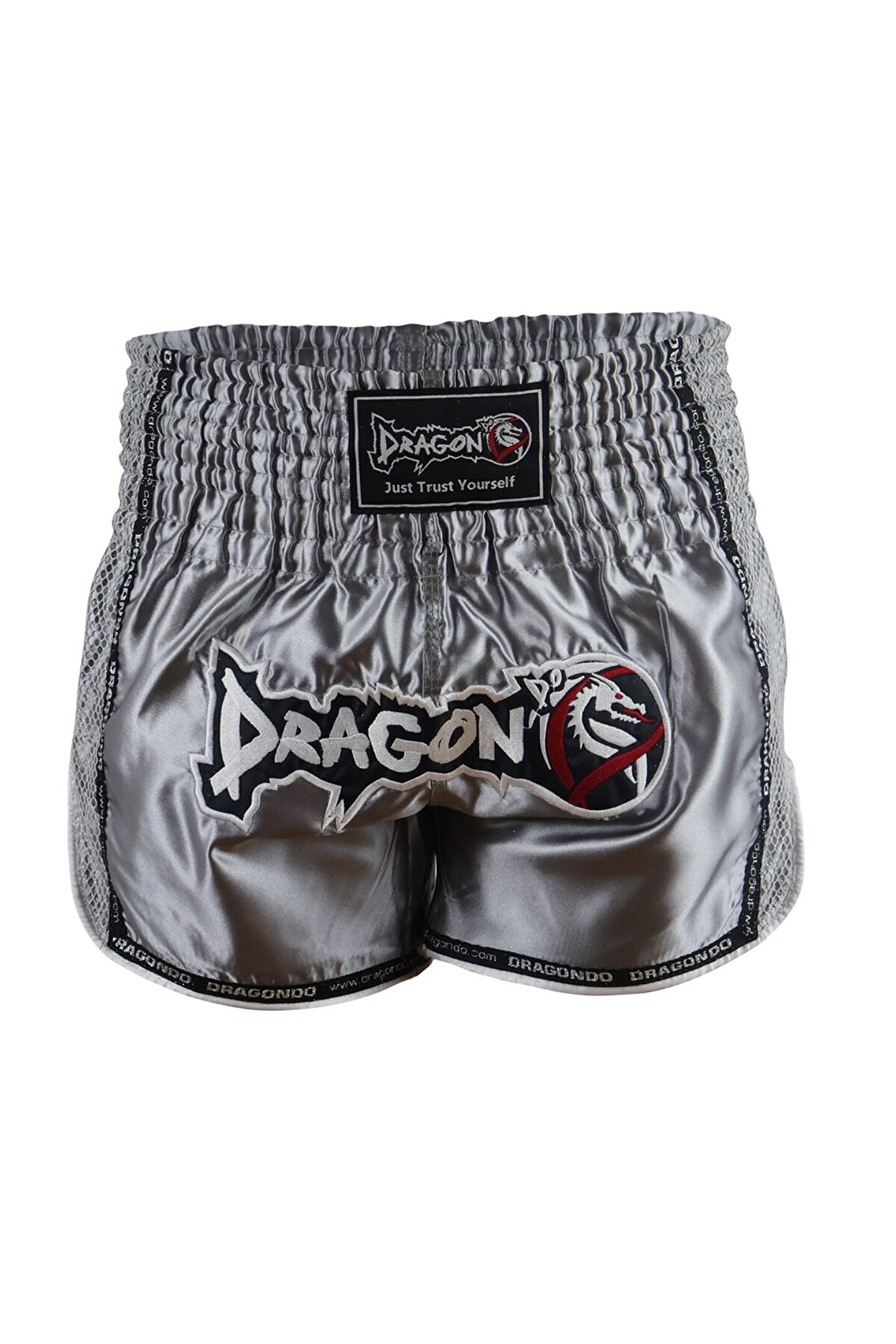 DragonDo MT3076 Shiny Muay Thai Gri Kick Boks Şortu Özel parlak simli kumaştan üretilmiştir.; -Geliştirilmiş kalıbı ve kesimiyle sporculara antrenmanlarda ve maçlarda büyük bir konfor sunar.; -Yan yırtmaçları hareket kolaylığı sağlar.; -Hafiftir ve çabuk kurur.