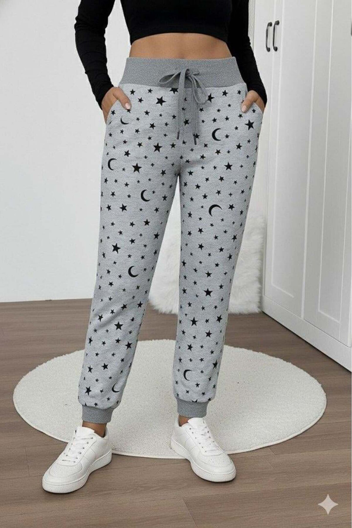 DRESSIFY Kadın Yüksek Bel Bağcıklı Desenli Iki Iplik Pantolon