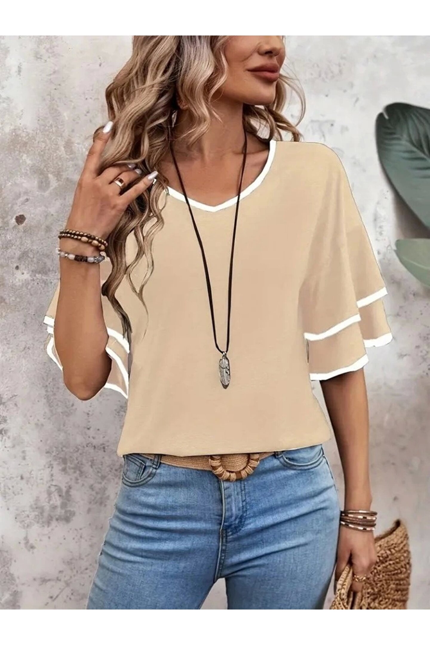 DRGY Kadın Kısa Kollu V Yakalı Viskon Bluz