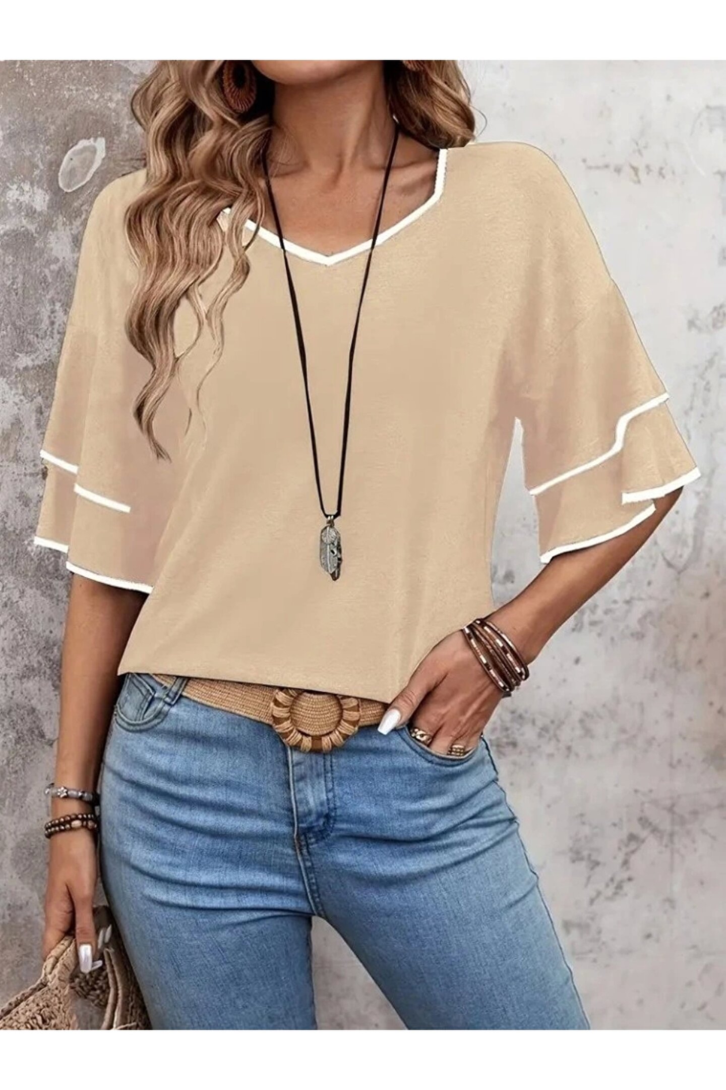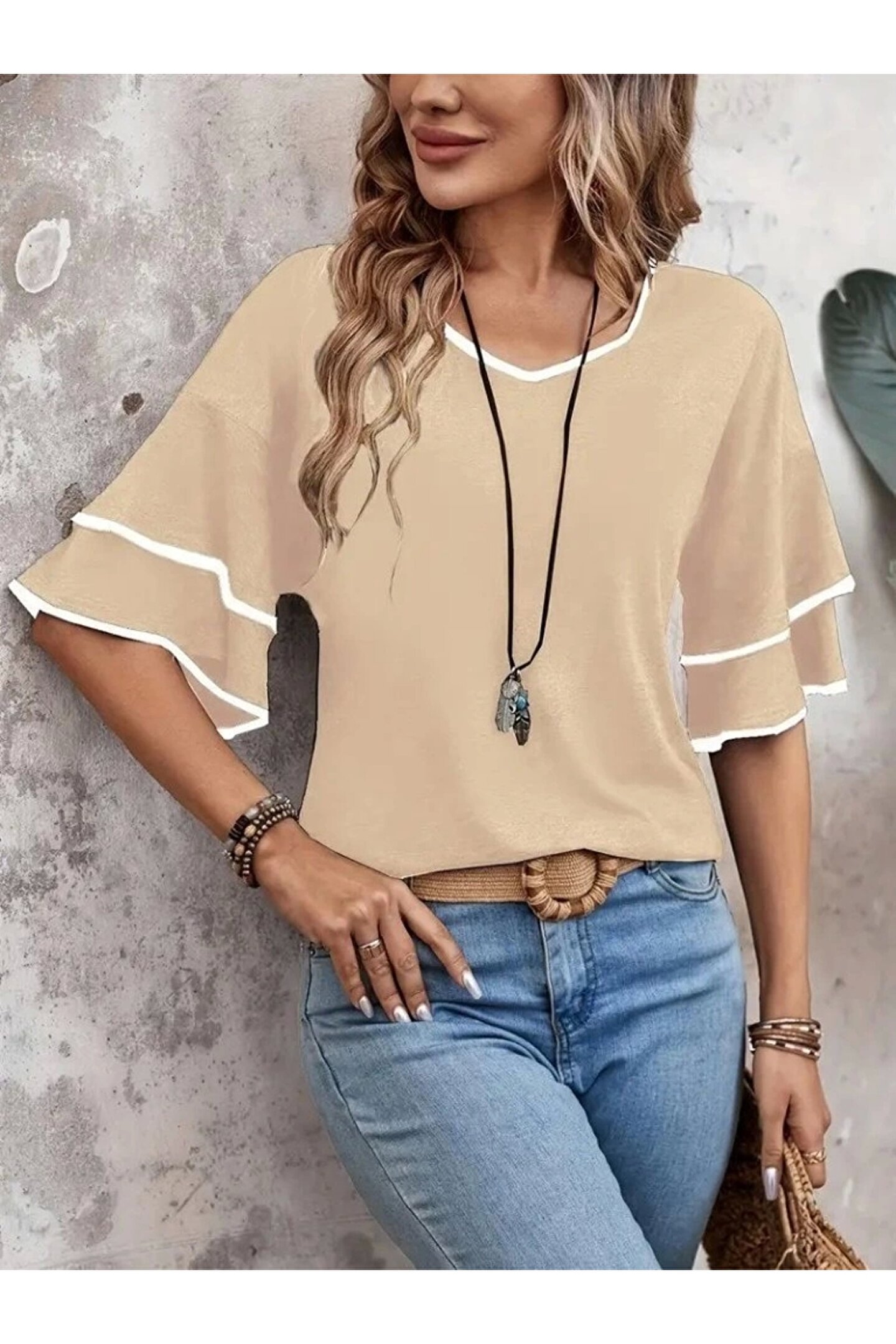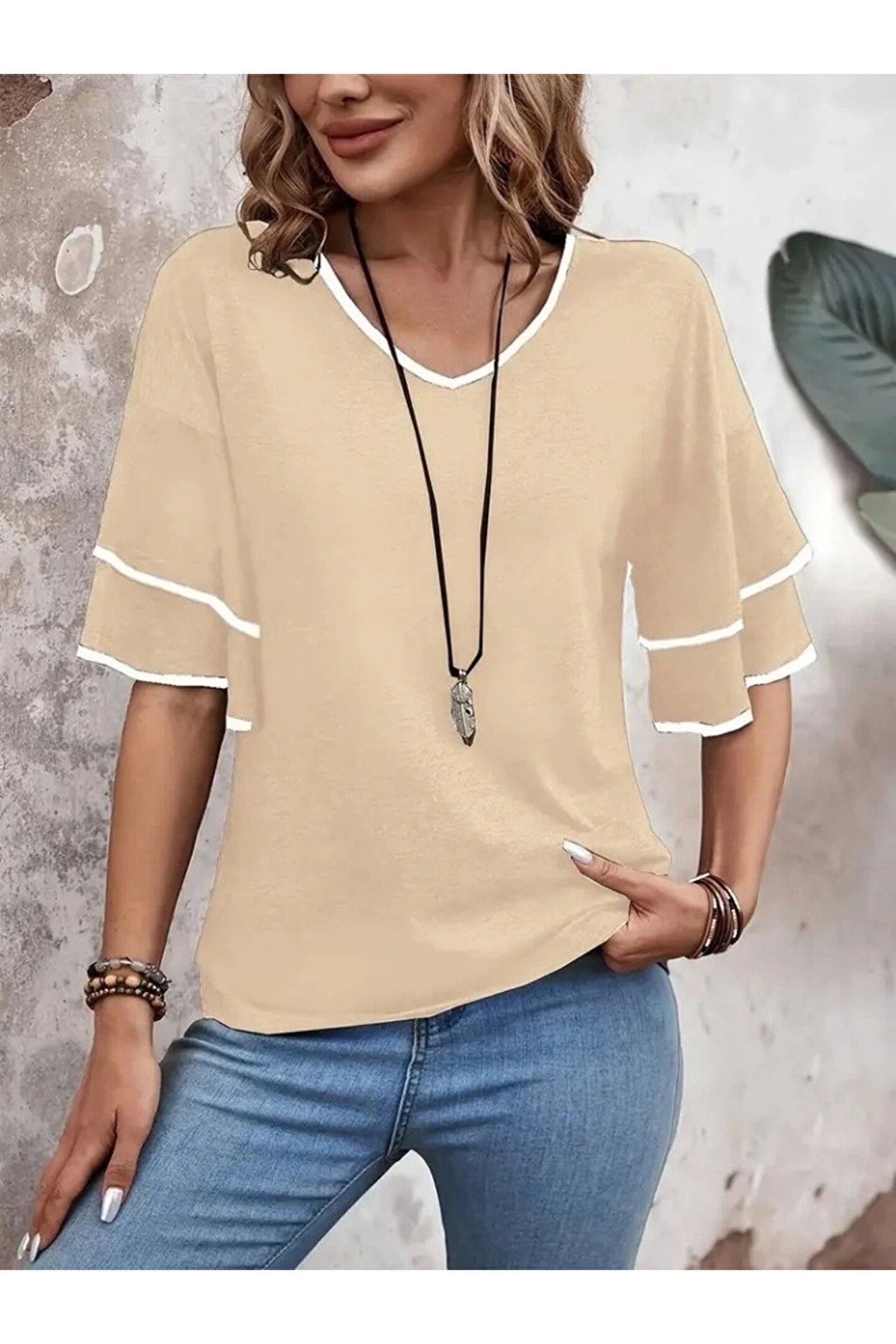 Kadın Kısa Kollu V Yakalı Viskon Bluz
