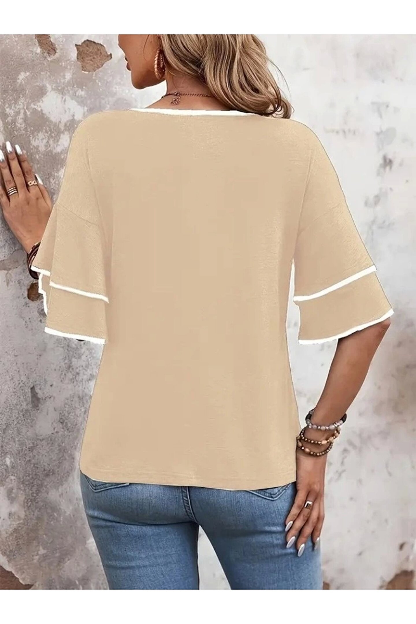 DRGY Kadın Kısa Kollu V Yakalı Viskon Bluz