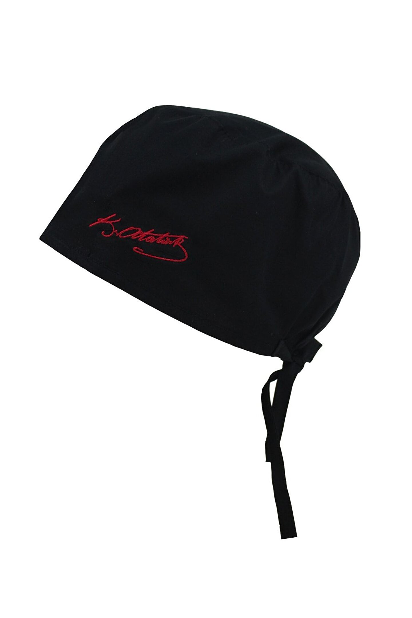DrMia K.atatürk Imzalı Siyah Cerrahi Doktor Hemşire Hastane Bonesi Kırmızı Nakışlı