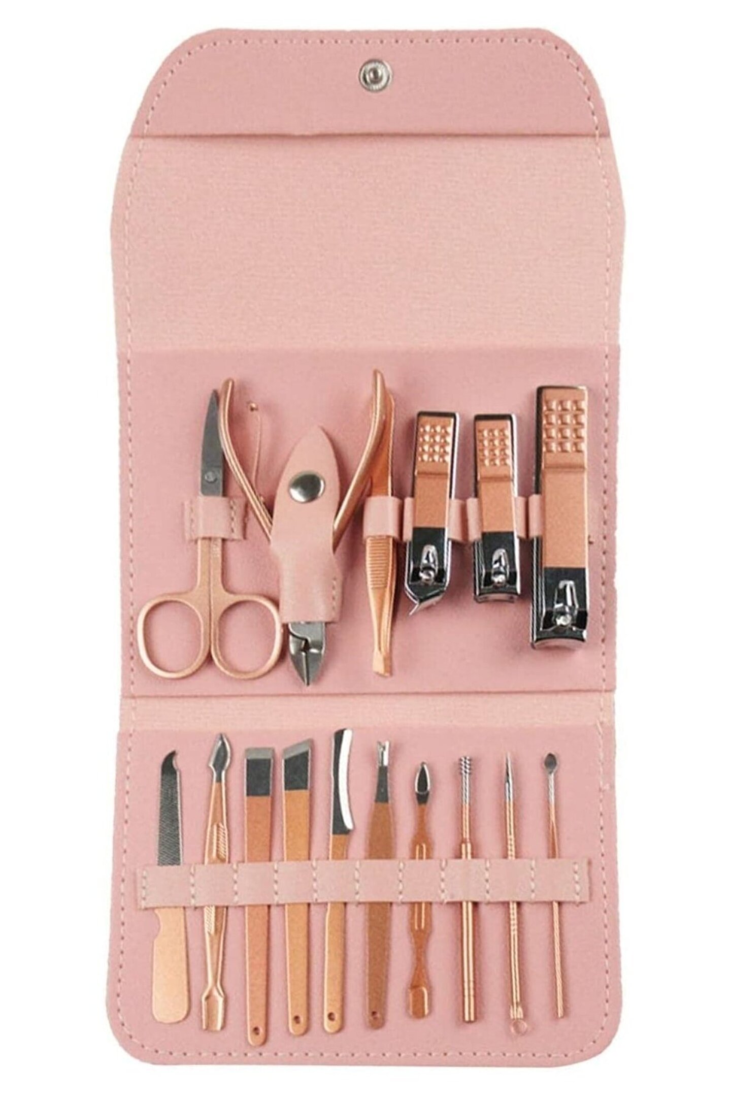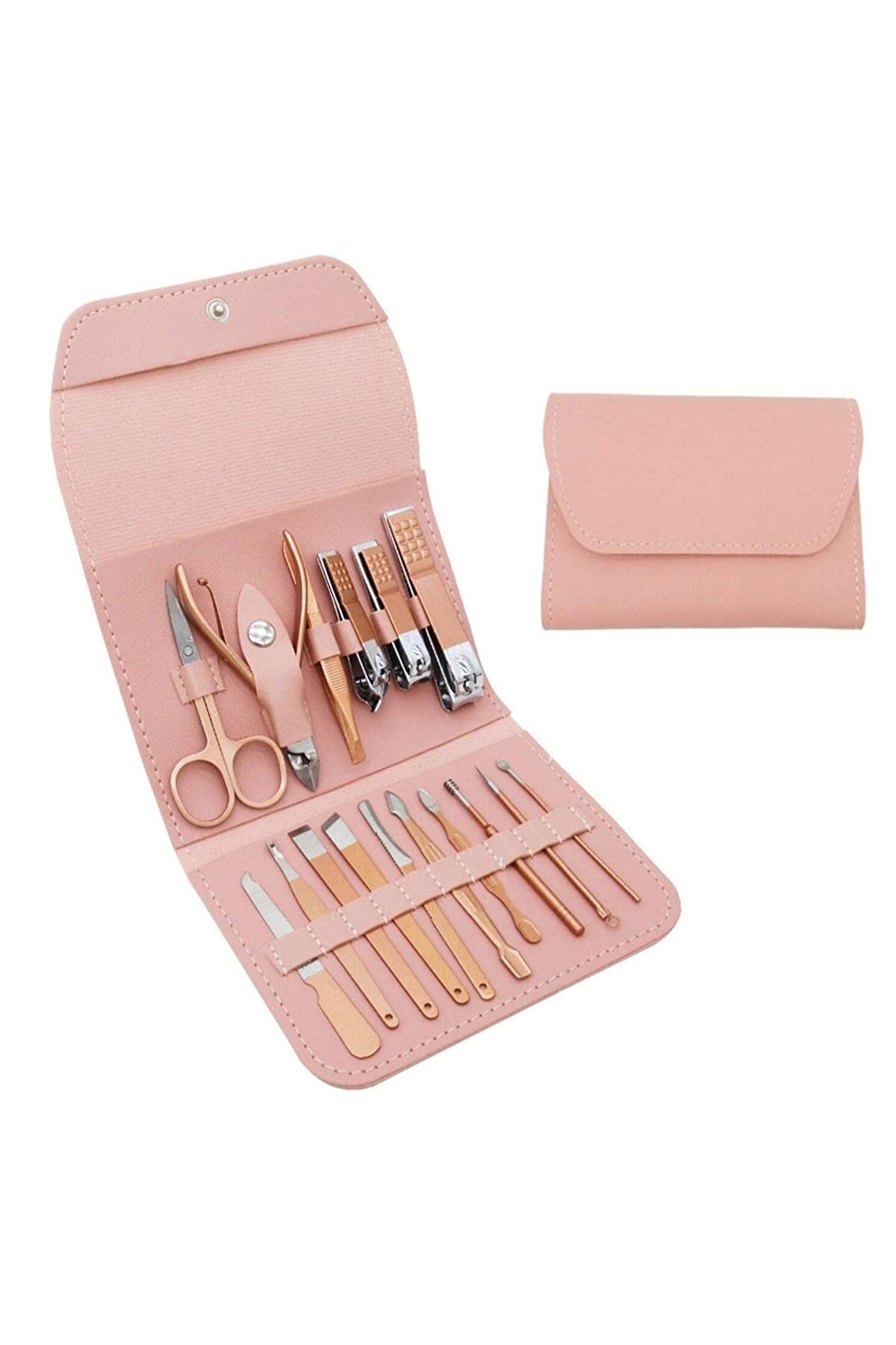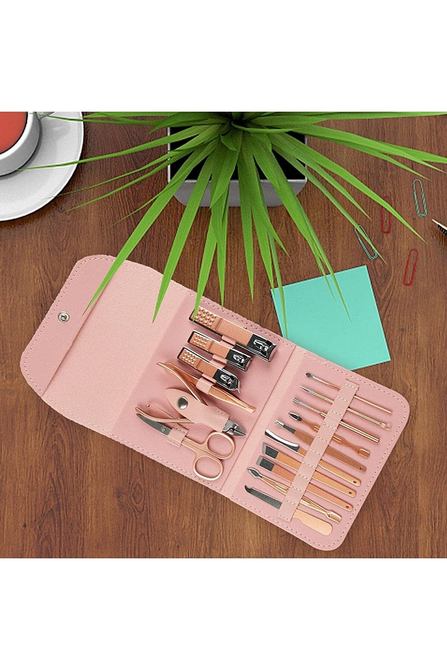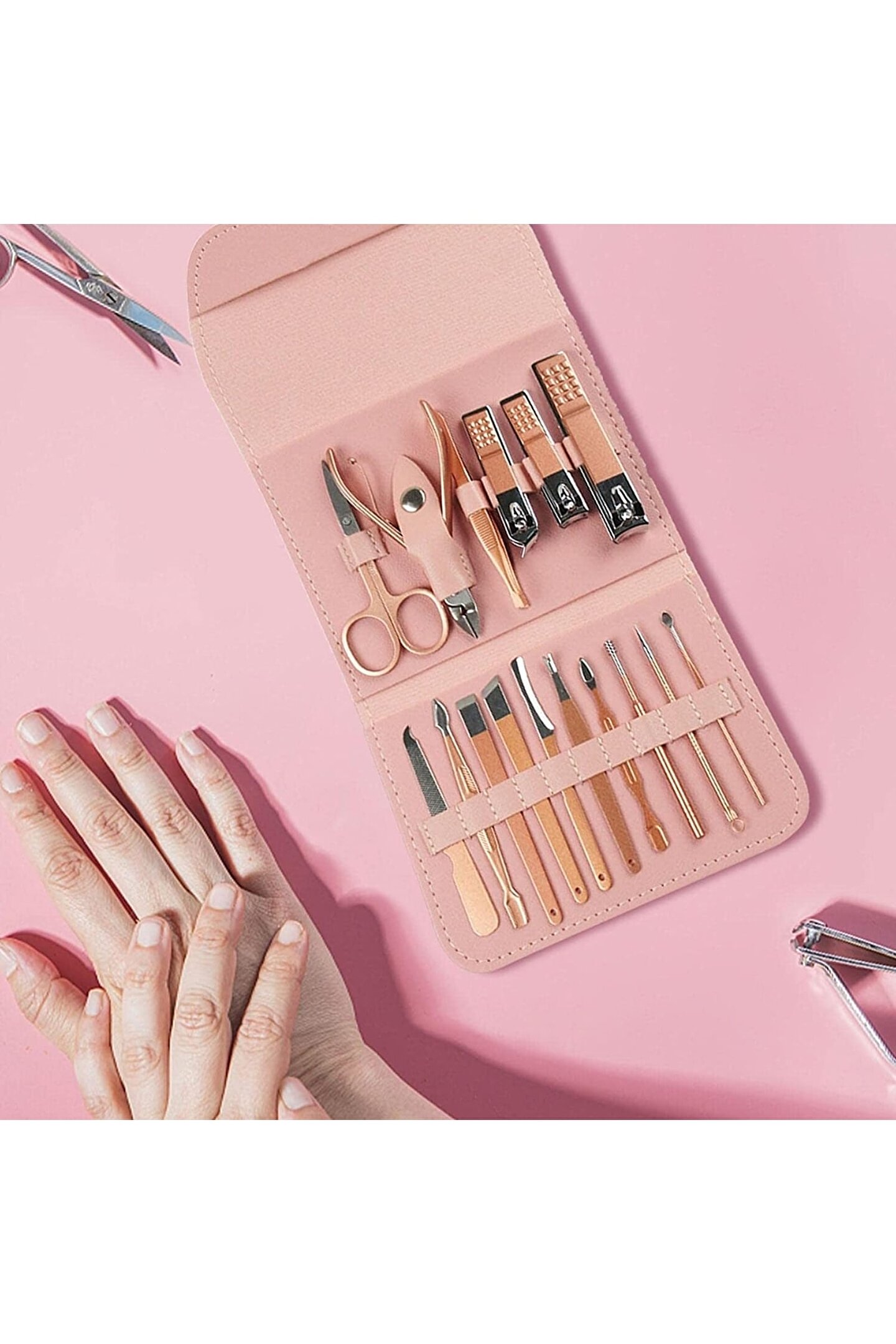 16 Parça Profesyonel Çelik Paslanmaz Deri Çantalı Manikür Pedikür Tırnak Yüz Bakım Seti