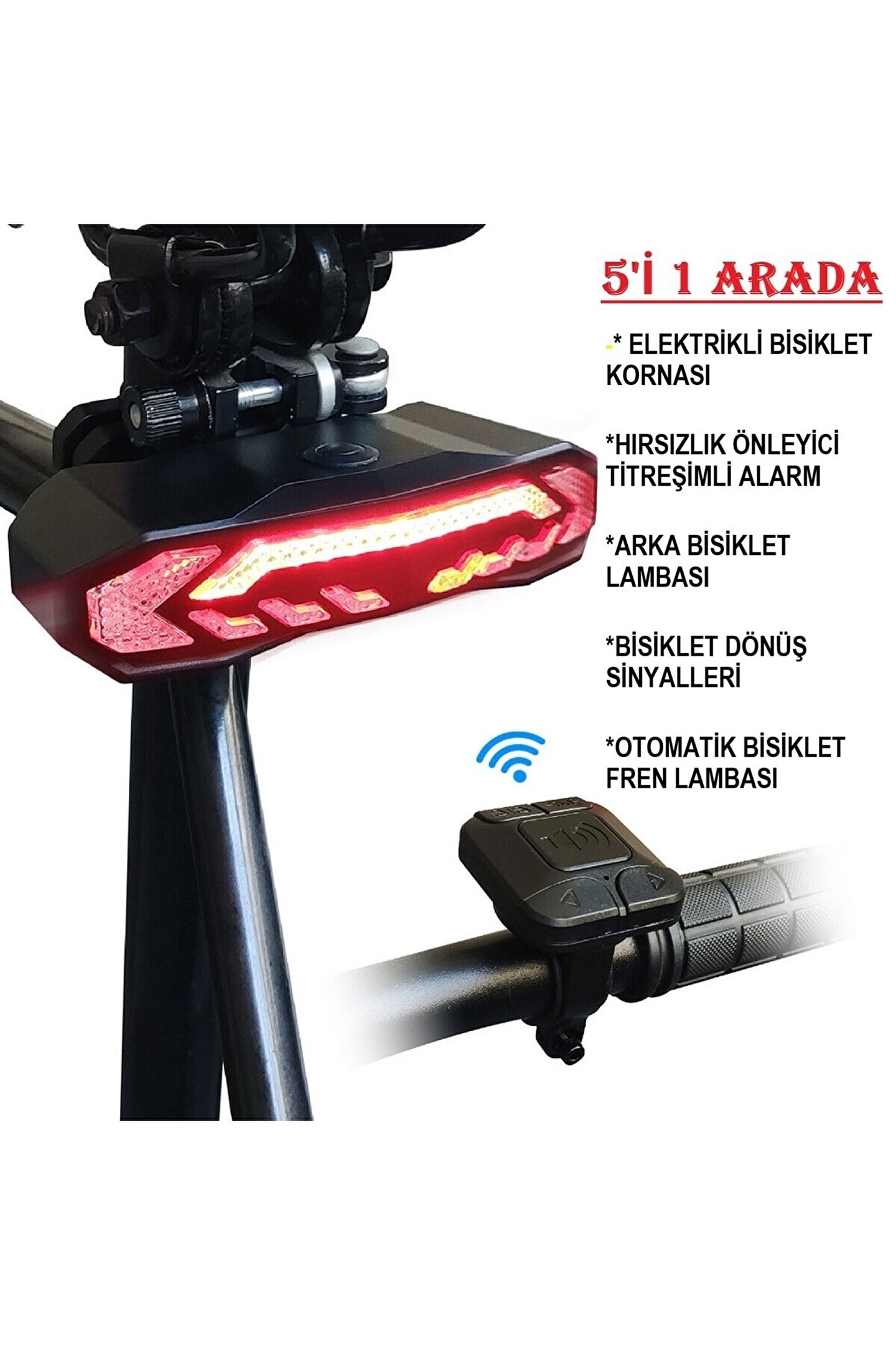 Akıllı Şarj Edilebilir Bisiklet Arka Lamba Dönüş Sinyali Stop Işığı, Uzaktan Kumandalı Alarm, Korna