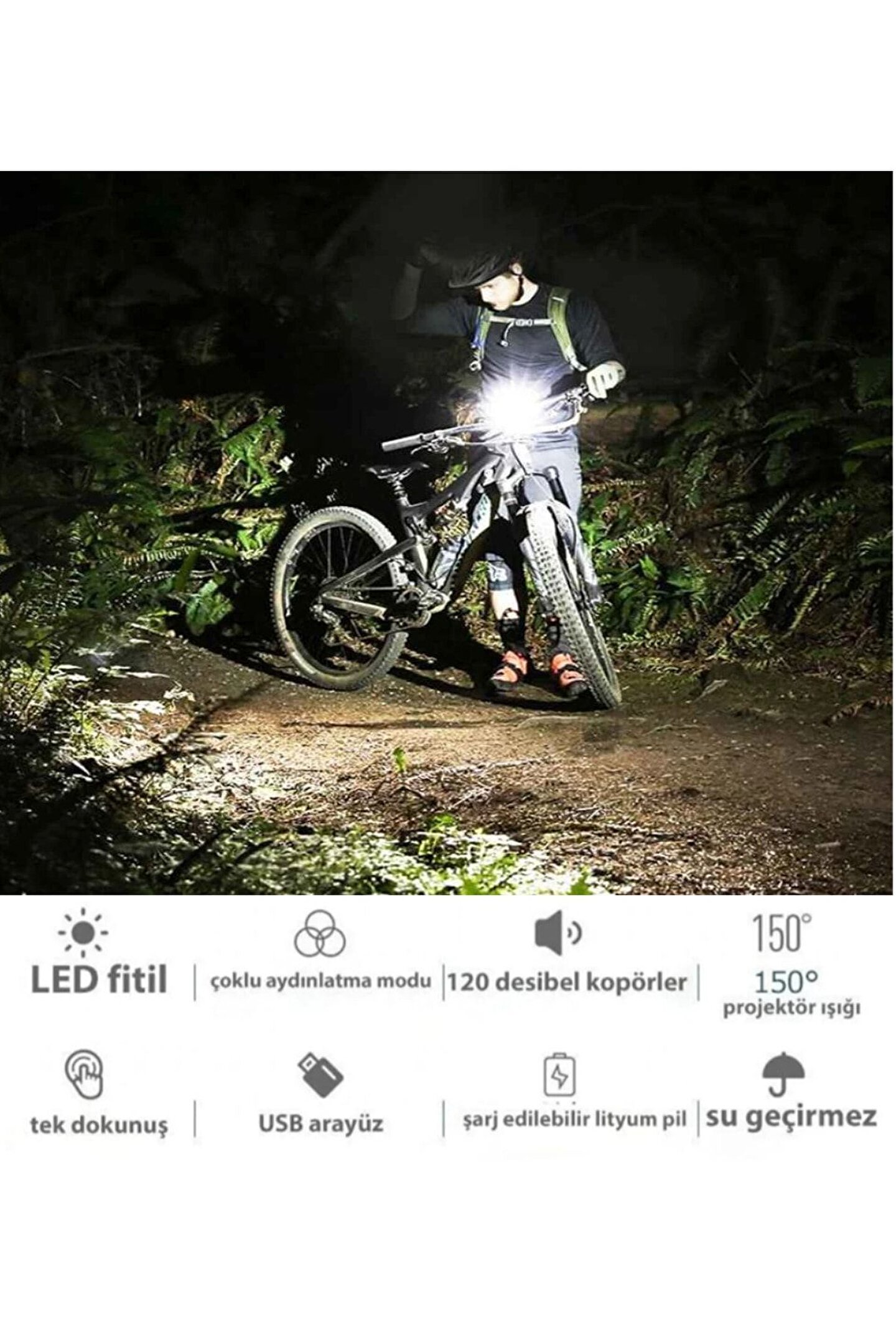 Ürün Açıklaması Ürün Açıklaması : 4 ışık modu: yüksek parlak, düşük parlak, flaş, sarı ışık Lityum pil içinde, 2-3 saat şarj ile 3-5 saat kullanabilirsiniz. ; Özellikler: Boyut: 10.5x4.1cm Ağırlık: yaklaşık. ; 170g Pil kapasitesi: 1500mAH(Deluxe Edition) LEADBIKE arka lambası: Malzeme: alüminyum alaşım + ABS + PC Parlaklık: 20 lümen parlaklık.;