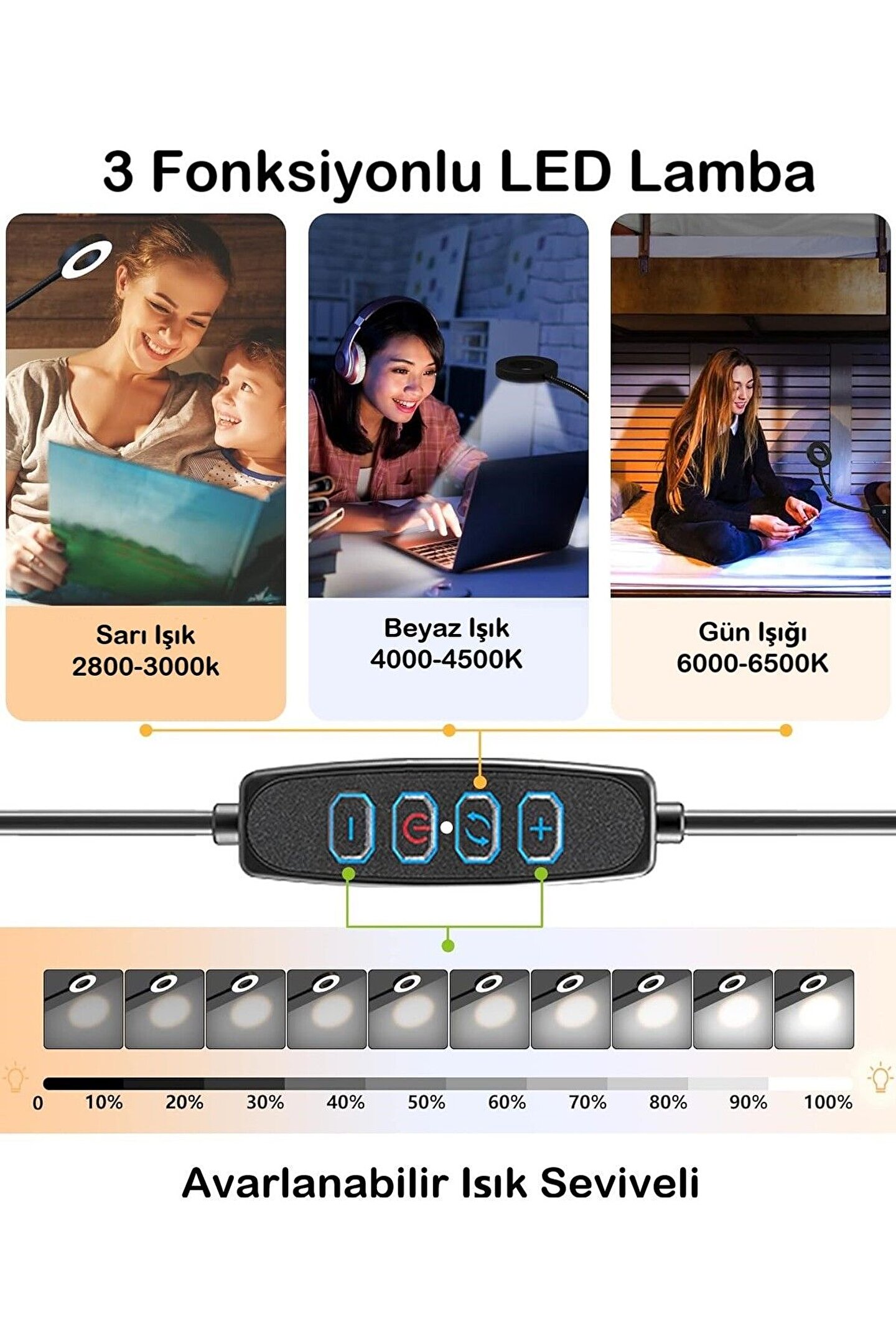 DUHALINE Çok Fonksiyonlu Akrobat Klipsli Masa Lambası Ayarlanabilir Işık Seviyeli LED Çalışma Lambası