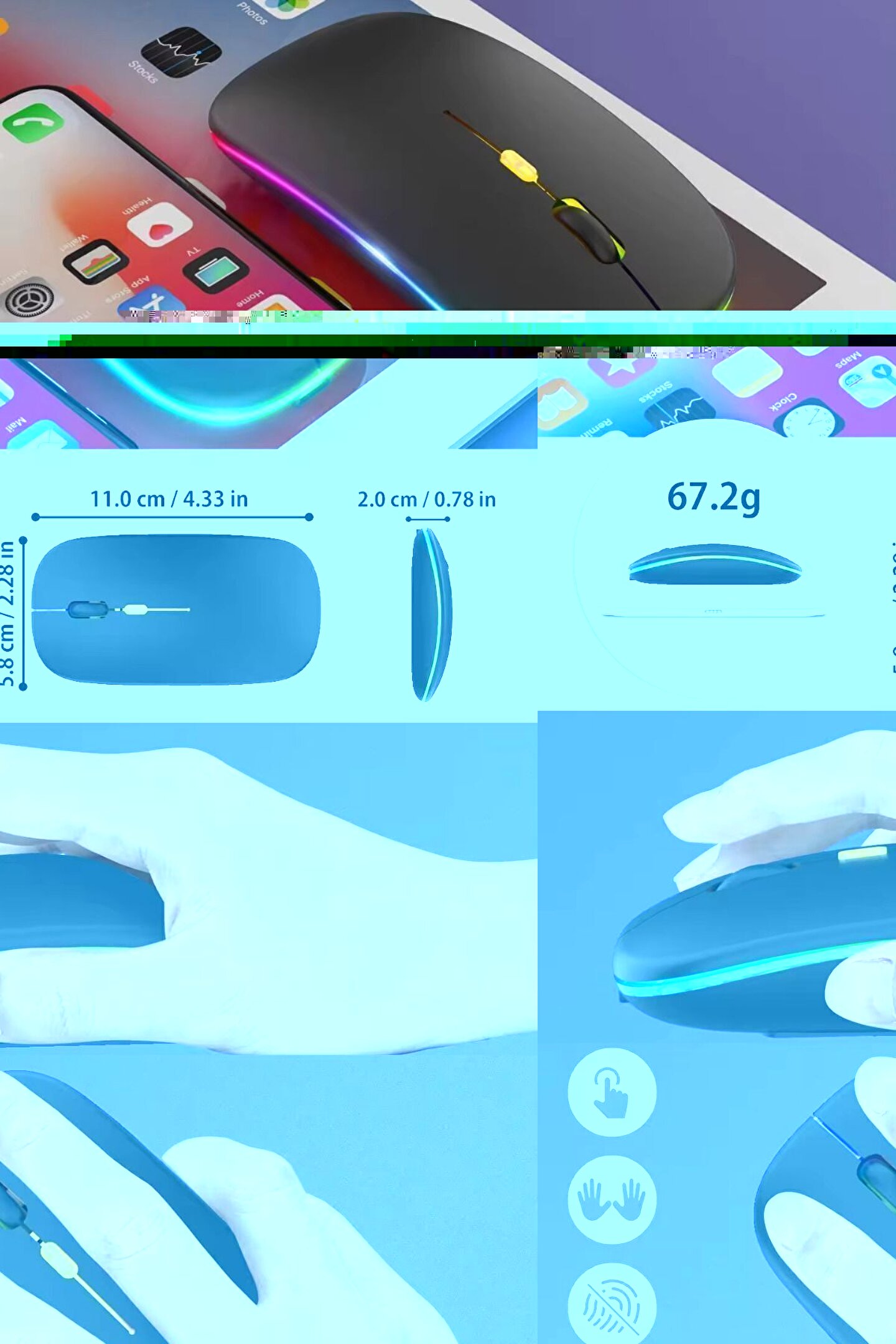 RGB LED Işıklı Bluetooth ve 2.4 GHz Wireless Dual ModeKablosuz Sessiz Şarjlı Mouse