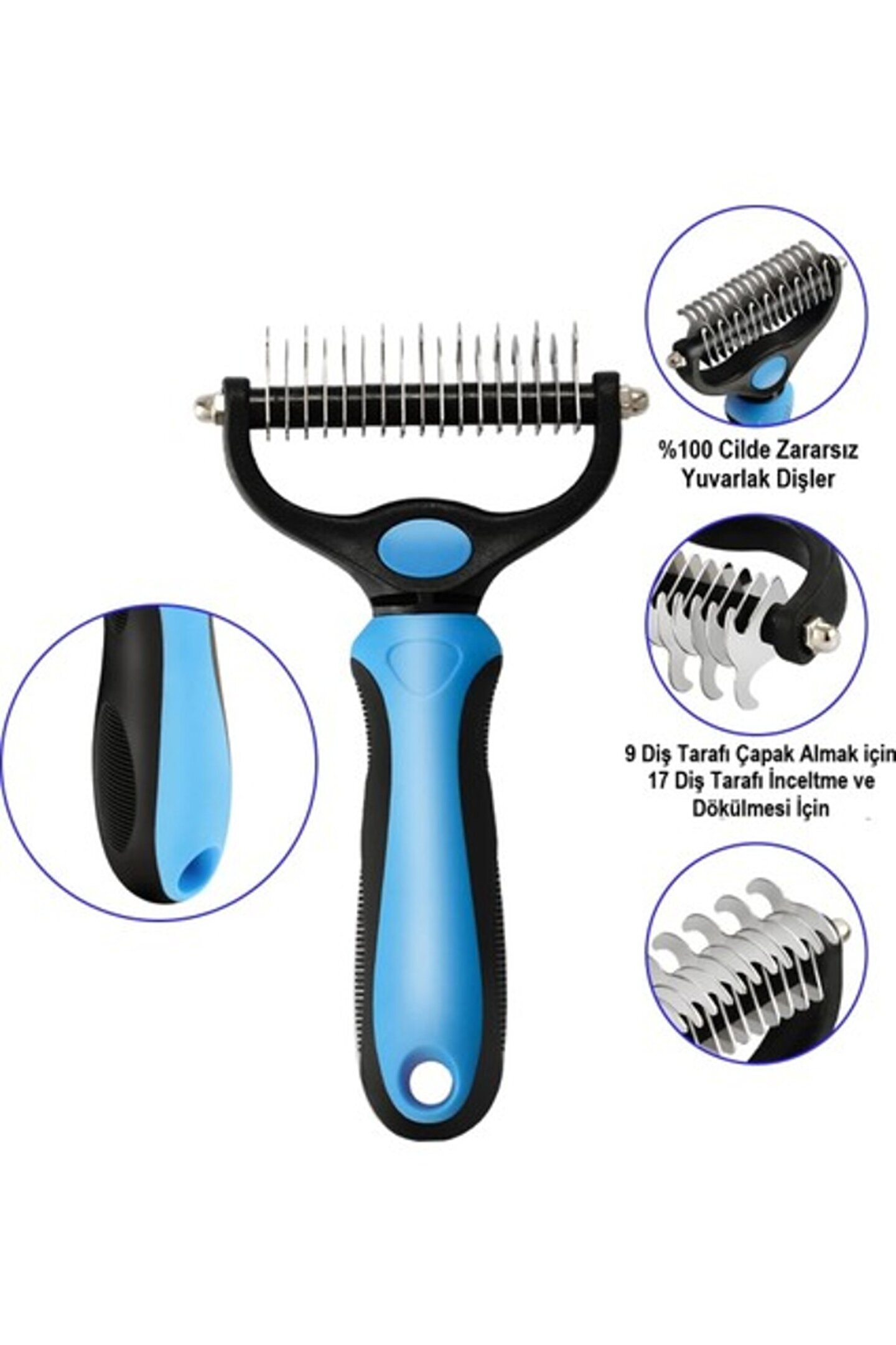 Kedi Köpek Tarağı Tüy Topak Açıcı Çift Taraflı Metal DişliEvcil Hayvan Bakım Fırçası Tarağı Evcil hayvanınızın daha iyi görünmesine ve daha sağlıklıhissetmesine yardımcı olur Plastik Saplı Metal Kedi Köpek Bakım Kıtık Tüy TopakAçıcı Tarak.; İçe kıvrık özel tasarım dişleri ile ulaşılması ve açılması çok zorolan kıtıkların açılmasına yardımcı olur.; Ergonomik plastik kaymaz sapı ve içe kıvrık özel tasarımdişleri ile ulaşılması ve açılması zor olan kıtıkların açılmasında etkilidir.; Köpek üst kürk ve alt kürk bakımı için kullanıma uygundur.; Uzun tüylü, kısa tüylü ve dalgalı tüylere sahip köpek ve kedilerdekullanılabilir.; Özellikle uzun tüylü evcil hayvanlarda en rastlanan tüylerinbirbirine girerek düğüm olması ve zamanla açılamayacak duruma gelerek kesilmesiile sonuçlanan durumların önüne geçmek için kullanabileceğiniz bir üründür.; Plastik Saplı MetalKedi Köpek Bakım Kıtık Tüy Topak Açıcı Tarağı düzenli kullandığınızda oluşmaktaolan tüy yumağı ve kıtıkları açarak evcil hayvanınızın canın yanmasınıengellemeye yardımcı olursunuz.; Aynı zamanda tarak alt tüyleri de havalandırarak evcilhayvanınızın derisinin hava almasını sağlamaktadır.; Taşınabilir yapısı ve plastik sapı sayesinde kullanımıpratiktir.; Çift kafalı tasarıma sahiptir.; 9 dişli tarafı yumuşak tüy alma için 17 dişli tarafı ise tüylerin hızlı incelmesi ve dökülmesiiçin kullanılır.; { "Garanti Süresi (Ay)": "2", "Yurt Dışı Satış": "Yok", "Stok Kodu": "HBCV00004LOMSQ", "Stok Adedi": "500 adetten az" }