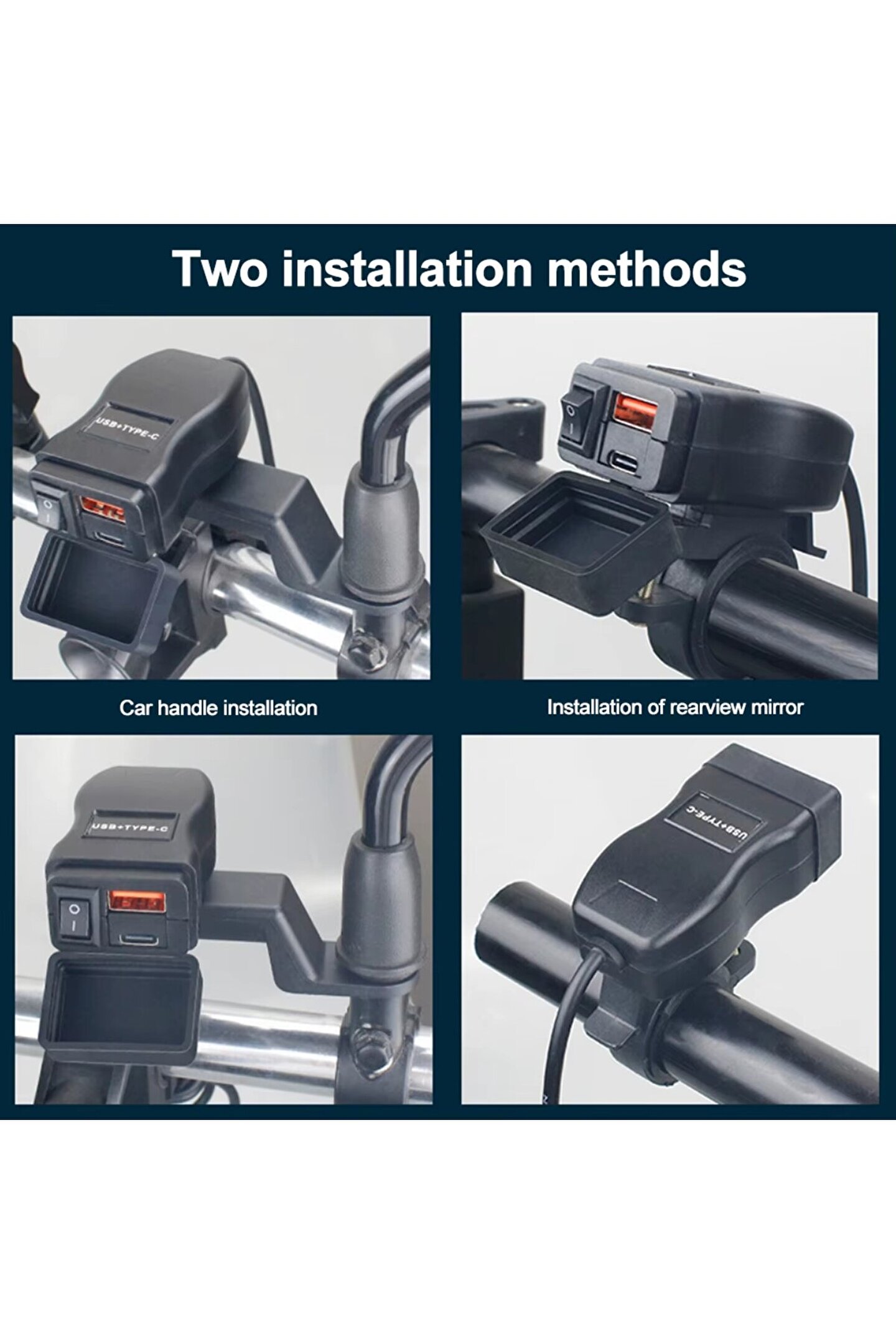 Motosiklet & Elektrikli Bisiklet Su Geçirmez Hızlı Şarj Cihazı - QC 3.0 USB + Type-C PD Çıkışlı - Gidon Bağlantılı Aç-Kapa Anahtarlı