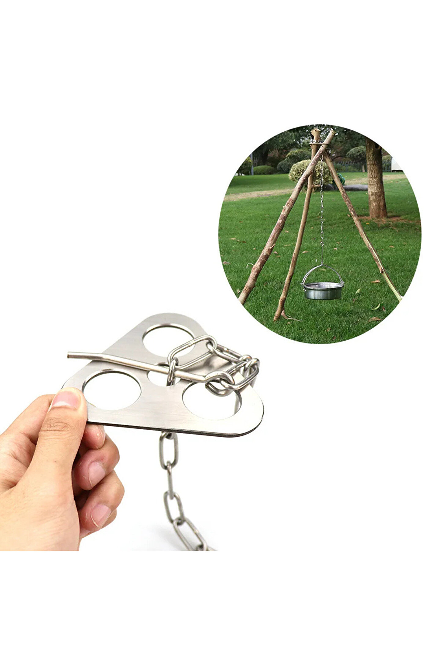 Paslanmaz Çelik Askı Kamp Tripodu Üç Ayaklı Halka, Zincirli ve Kancalı Kamp Tencere Askı Aparatı