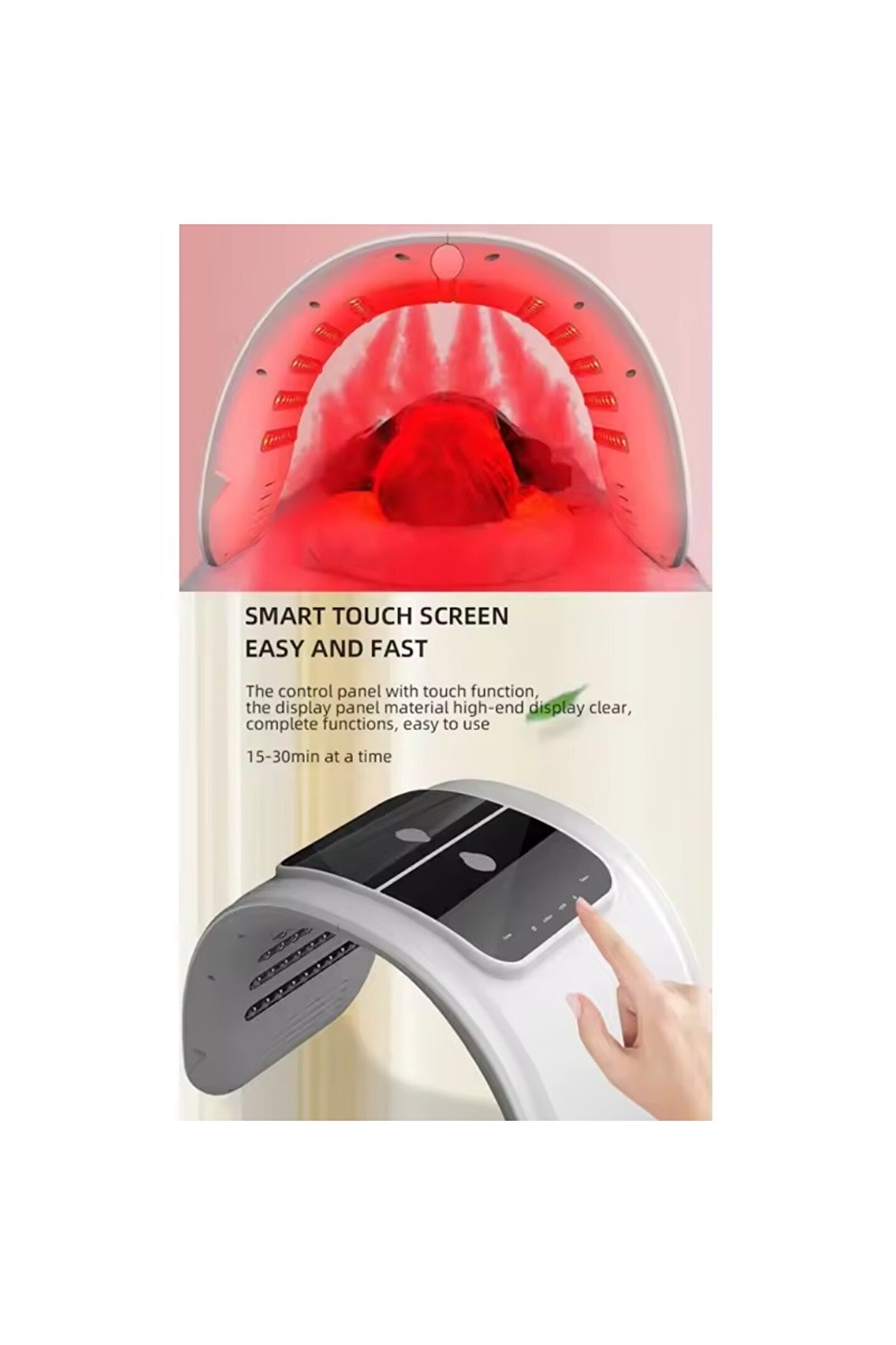 Dokunmatik paneli, şık tasarımı ve ergonomik yapısıyla hem yüz hem de boyun bölgesinde rahat kullanım imkânı sunar. Düzenli kullanımda ciltte daha parlak, daha sıkı ve dengeli bir görünüm oluşmasına yardımcı olur.