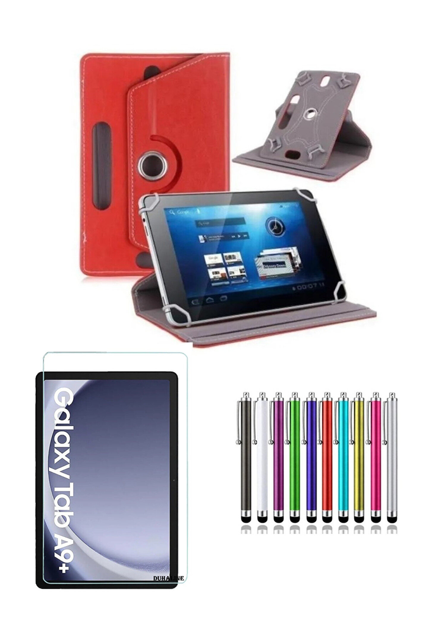 Samsung Galaxy Tab A9 Plus 11" İStandlı Tablet Kılıfı + Kırılmaz Ekran Koruyucu+ Dokunmatik Kalem