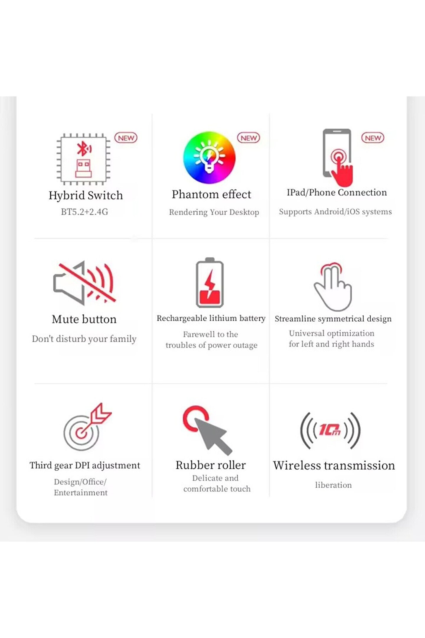 Dual Mode Bağlantı:Bu yenilikçi mouse, hem Bluetooth hem de 2.4 GHz kablosuz bağlantı seçenekleri sunar. İki cihaz arasında kolayca geçiş yapabilir, çalışma ve oyun için mükemmel bir deneyim sağlar.