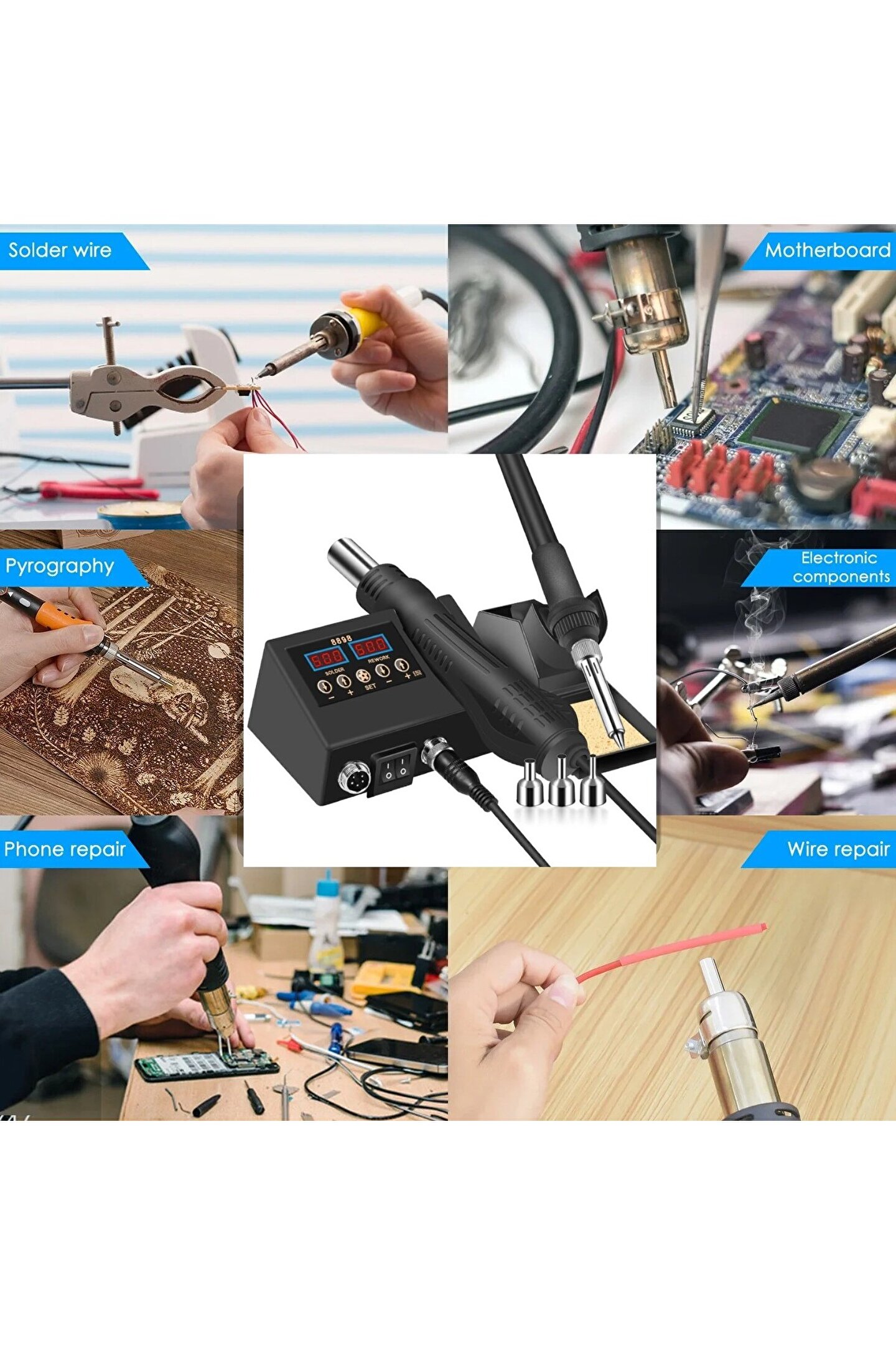 Sıcak Hava Üflemeli Havya İstasyonu Dijital Ekran 2in1 LehimMakinesi ve Hava Tabancası + TAMİR MATI