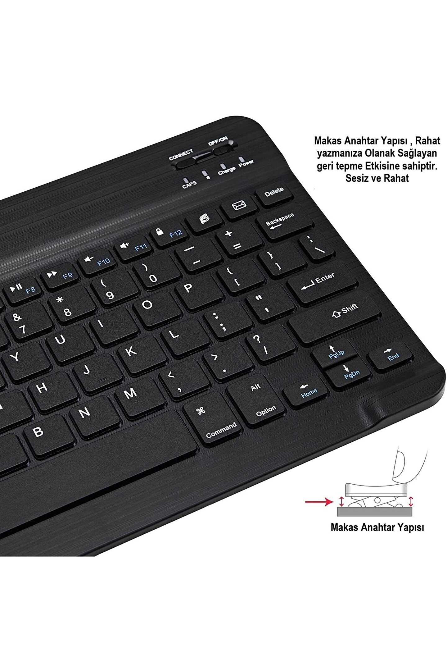 DUHALINE TABLET VE TELEFON İÇİN KABLOSUZ BLUETOOTH KLAVYE Windows Android iOS uyumlu-220mAh Pilli- Kauçuk klavye tuşları 1. ; GENİŞ UYUMLULUK: Bluetooth'u (iOS, Android, Mac OS ve Windows) destekleyen, iPad'ler, iPhone'lar ve Bluetooth özellikli Tabletler, Dizüstü Bilgisayarlar ve iPad air, iPad mini, iPad Pro, iPhone Xs gibi Cep Telefonları ile uyumludur. ; 2. ; ULTRA-SLIM, HAFİF ve TAŞINABİLİR: Bu hafif Bluetooth klavye, iş veya oyun için taşınabilir özellikli bir klavyeye ihtiyaç duyan ve özellikle iş seyahatleri için uygun olan herkes için tasarlanmıştır. ; 3. ; ŞARJ EDİLEBİLİR VE OTOMATİK UYKU MODU: Evrensel kablosuz bluetooth klavye yerleşik lityum pil kullanır, USB kablosuyla kolayca şarj edilebilir, pili değiştirmeye gerek yoktur. ; Dahili Şarj Edilebilir pil inanılmaz derecede uzun ömürlüdür. ; Bluetooth kablosuz klavye, enerji tasarrufu için otomatik olarak uyku moduna girebilir. ; 4. ; KARARLI BAĞLANTI: Gelişmiş Bluetooth teknolojisi, 10 metrelik bir çalışma aralığı ile kablosuz bir bağlantı sağlar. ; Ancak, bluetooth işlevi olmayan Masaüstü Bilgisayar Dizüstü Bilgisayar için, kullanmadan önce bluetooth sürücüsünü yüklemek için üçüncü taraf bir bluetooth adaptörü (dahil değildir) takmanız gerekir. ; 5. ; KONFORLU ve SESSİZ YAZIM: Fısıltı kadar sessiz, düşük sesli tuşlar parmak uçlarınıza yepyeni bir rahatlık düzeyi getiriyor. ; Ayrıca, en çok kullandığınız tüm işlevleri ve ortam denetimlerini Windows'a ayrılmış kısayol tuşlarına atayabilirsiniz.;
