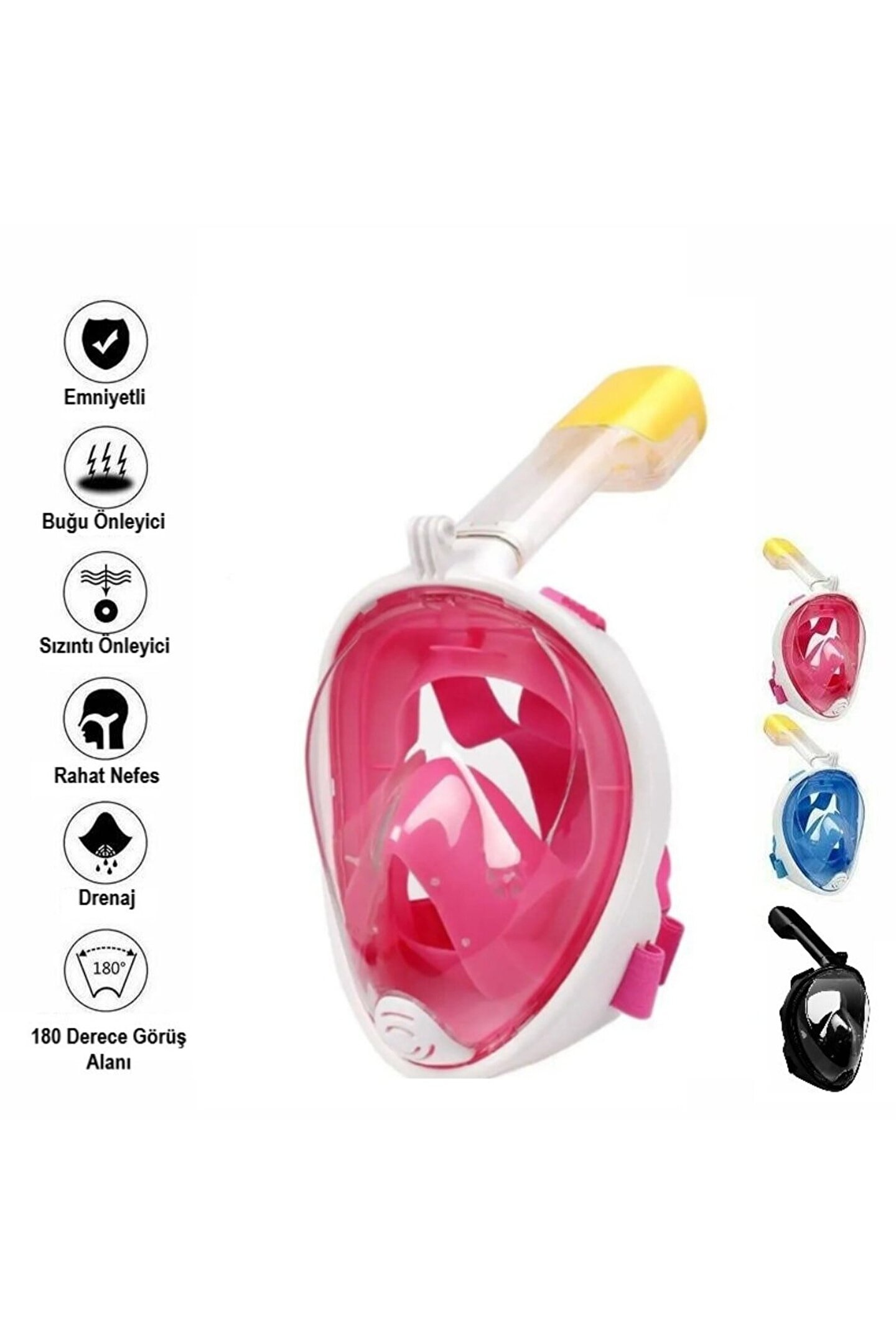 180 ° tam yüz tasarımı: şnorkel maske 180 °panoramik görünüm sağlar, dalış yaparken ağzınızdan veya burnunuzdan rahatçanefes almak için her zamankinden daha kolay hale getirir.