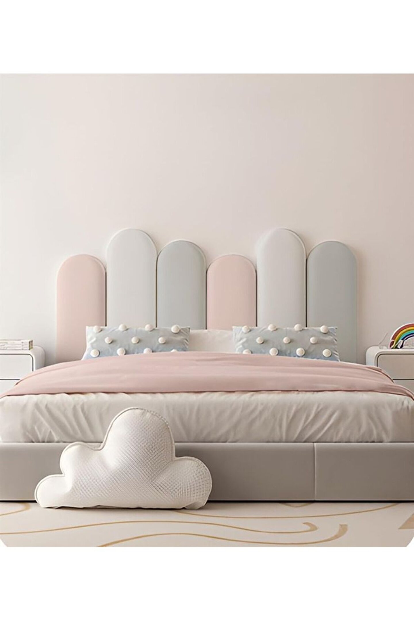 • Oval üst kısımlı Yatak başlığı fayansları-Çocuk yatak odaları için dekoratif döşemeli duvar panelleri.