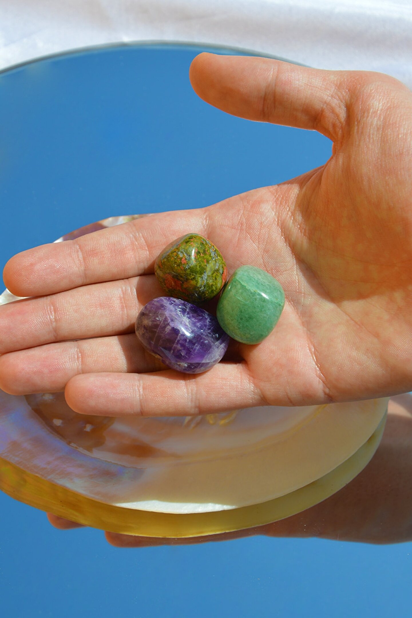 Not: Taşlarımızdaki doğal varyasyonlar nedeniyle, her ürünümüz desen, renk ve BOYUT açısından benzersizdir. Doğal taşlar kişiye özeldir. Taşıyıcısı farklı kişiler olmamalıdır. Arındırmak için tütsüleyebilirsiniz.;Aventurin:;Hamilelerin doğuma kadar sürekli yanında taşıdığı aventurin taşı aynı zamanda doğurganlık açısından da önemli doğal taşlar arasında yer alır.;Aventurin taşı, güven ve uyumu besleyen enerjik özelliklere sahiptir.;Bir enerji bloğunu tetikleyebilecek kalıcı duygusal sorunları çözmenize yardımcı olur.;Unakit:; Doğurganlığı iyileştirmek için gerekli olan pozitif bir ruhu teşvik eder.;Enerji alanındaki tıkanmaların geçmiş deneyimler tarafından nasıl tetiklenebileceğini hatırlamanıza ve anlamanıza yardımcı olur. Bu tür tıkanmalar, doğurganlık dahil olmak üzere bir dizi manevi soruna yol açabilir.;Hamilelik süresi boyunca hem annenin hem de bebeğin sağlığını korumaya yardımcı olduğuna inanılır.;Ametist:;Stresi ve gerginliği azaltarak daha kolay doğum yapmayı sağlar.;Koruyucu etkisi sayesinde hamilelik sürecinde anne ve bebeği koruduğuna inanılır.
