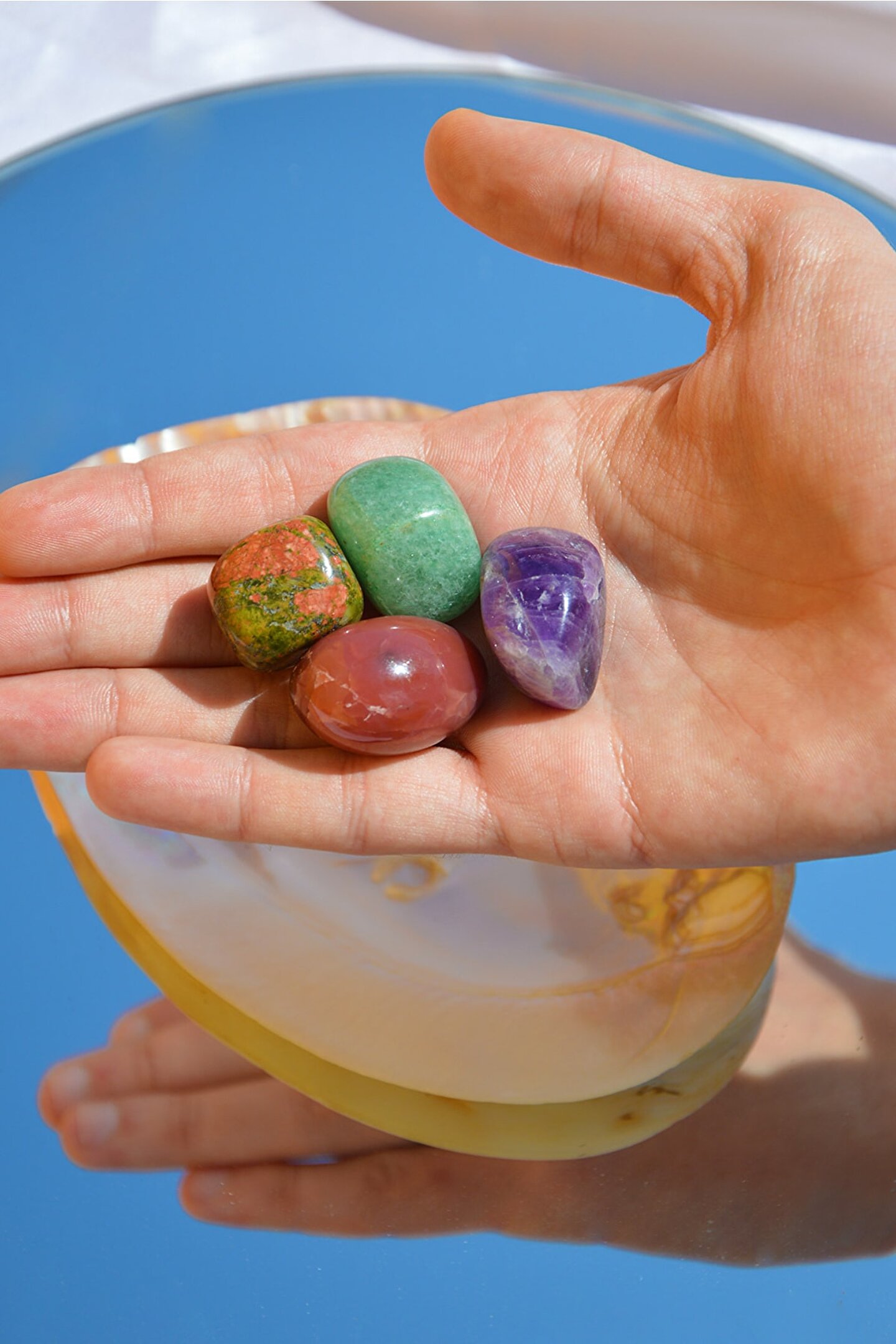Düşler Kabus Ve Uyku Sorunu Doğal Taş Tumble Seti (ametist, Unakit, Akik, Aventurin)