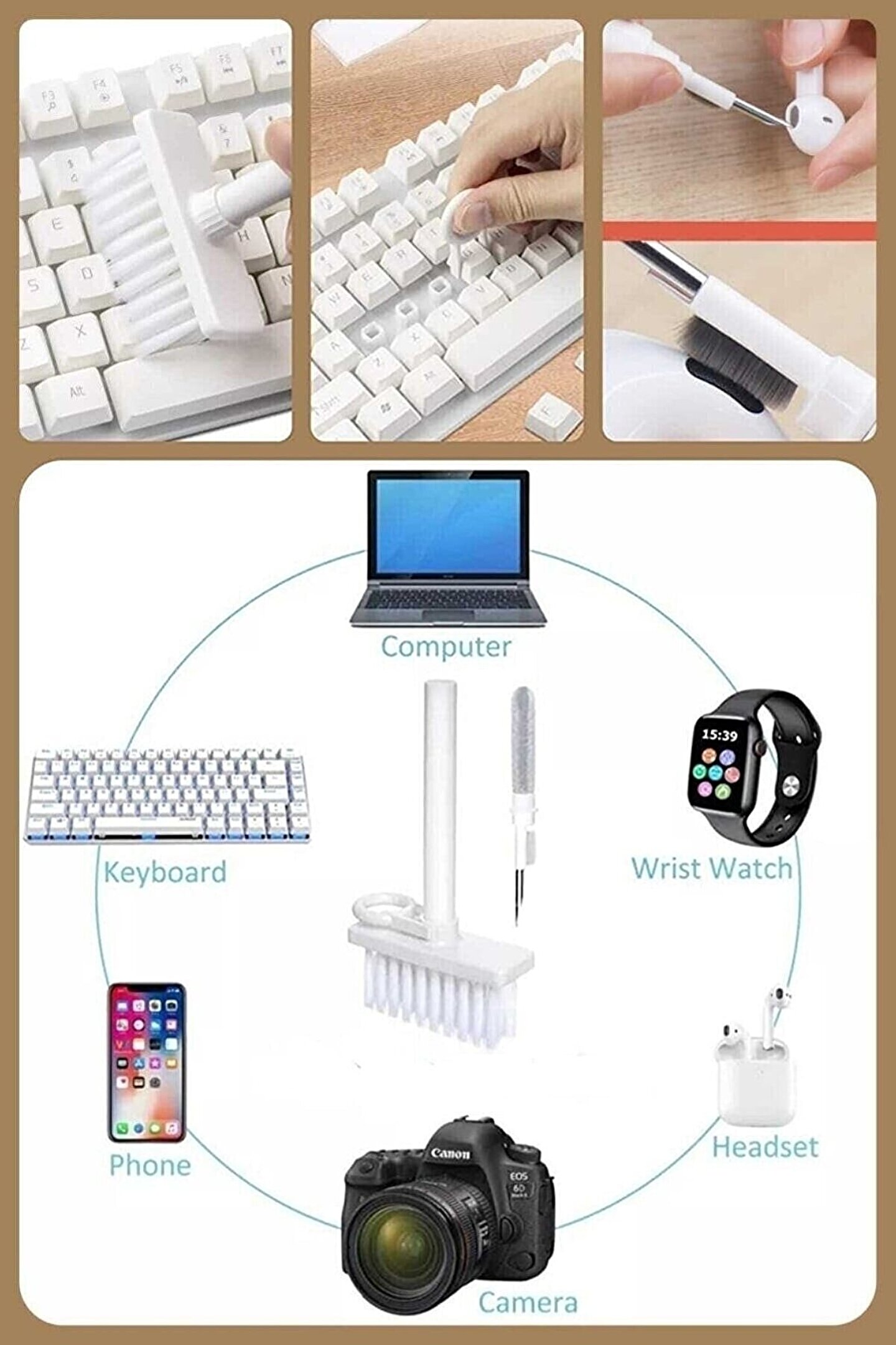 Klavye temizleme, Bluetooth kulaklık temizleme kiti Set içerisinde naylon kıllı fırça, uç kısmında bulunan sünger, sap içerisine gizlenmiş yüksek yoğunluklu fırça, metal kalem ucu ve klavye tuş çektirmesi aparatı bulunmaktadır ; , çeşitli temizlik ihtiyaçlarını karşılamak için fırça sapı içerine gizlenmiş tasarım yumuşak fırça klavyeye zarar vermez. ; Çok fonksiyonlu temizleme kiti : Uç kısımda bulunan süngeri ile kablosuz kulaklığın şarj ünitesinin tozunu temizleyebilirsiniz ; . Yine sap kısmında bulunan yüksek yoğunluklu fırça, kulaklığın ses çıkış deliğindeki kiri temizleyebilir. ; Metal kalem ucu inatçı tozu temizleyebilir. ; Tuşları çekmek çok kolay: Basit bir tuş çektirmesi aparatı ile klavye tuşunun değişimi artık zahmetli değil ve tuşun çıkarılması daha temiz ve daha kapsamlı her türlü temizlik ihtiyacı ile başa çıkmak kolay: ; 4 çeşit temizlik kafası, çok amaçlı, klavye ve kulaklıkların her köşesinde derin temizlik ;