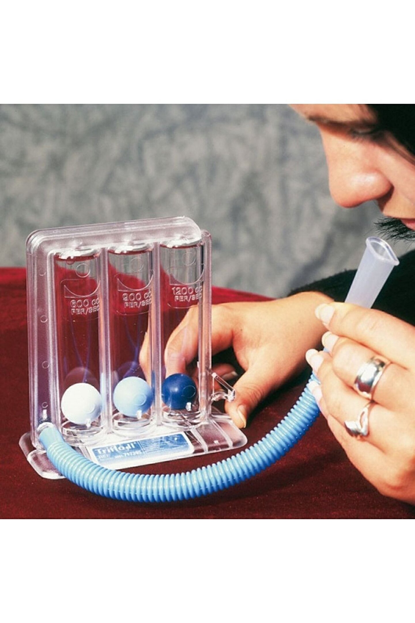 Easyflow Triflo Solunum Egzersiz Cihazı 3 Üfleme Topu- Solunum/Nefes Egzersiz Aleti Cihazı oluşturan parçaları kutudan çıkarın.; ; Emiş borusunu, cihaz gövdesinin alt kısmında bulunan emiş ucuna takınız.; ; İlk veya tekrar kullanımdan önce, yalnız ağızlık parçasını sıcak suyla durulayın ve sallayarak kurulayın.; ; Düşük seviyeli solunum için, yalnız 1. odadaki topu yukarı kaldıracak ve 2. top ilk pozisyonunu bozmadan duracak kadar yeterli hava emişini yapın.; 1. top zirvede olduğu pozisyonda takribi 3 saniye tutun ve sonra nefesinizi dışarı bırakın.; ; Yüksek seviyeli solunum için; 1. ve 2. odadaki topları zirveye çıkacak ve 3. odadaki topun pozisyonunu bozmayacak şekilde yeterli nefes alın ve sonra nefesinizi dışarı bırakın.; ; Her iki egzersizde nefesinizi boşaltırken ağızlığı ağzınızdan çıkarmaya özen gösteriniz.; ; Her iki tip solunum egzersizini hekim, hemşire yada terapistin kontrolü altında gerçekleştirin.; ;
