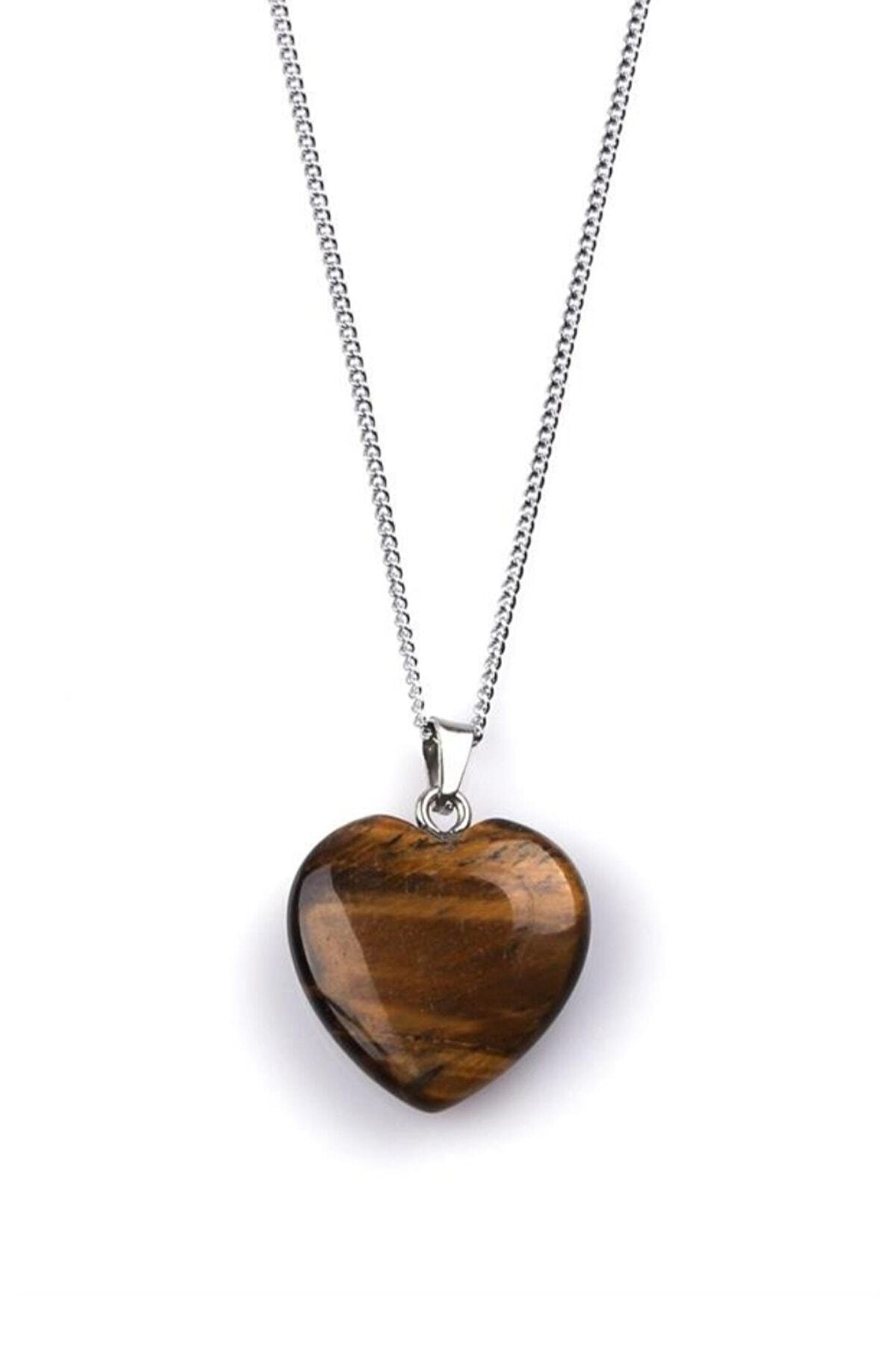 Ecelike Doğal Taş Kaplan Gözü Kolye Kalpli