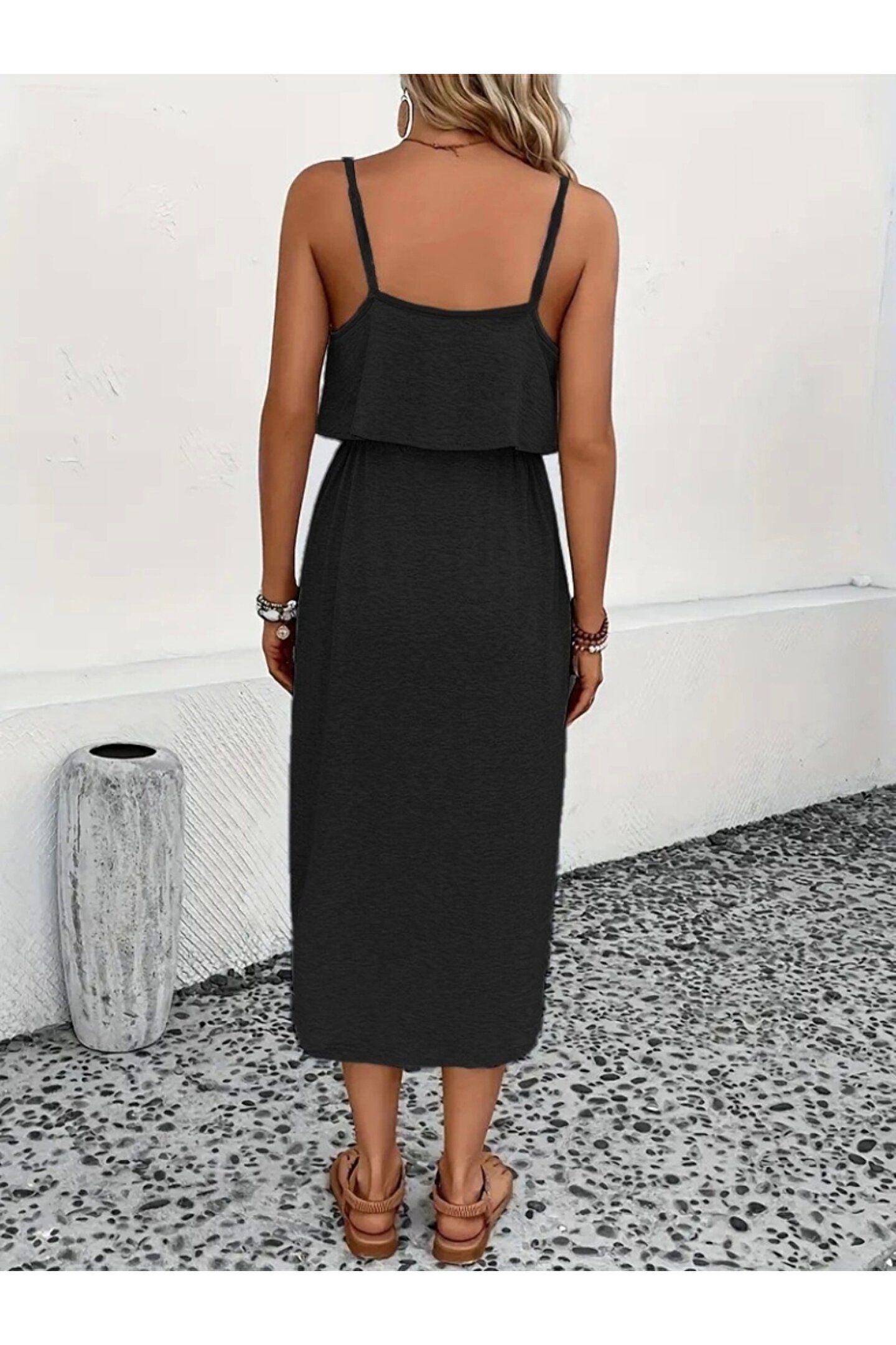 EDA COLLECTION Kadın Askılı V Yakalı Viskon Bluz Ve Bağcıklı Etek Ikili Takım