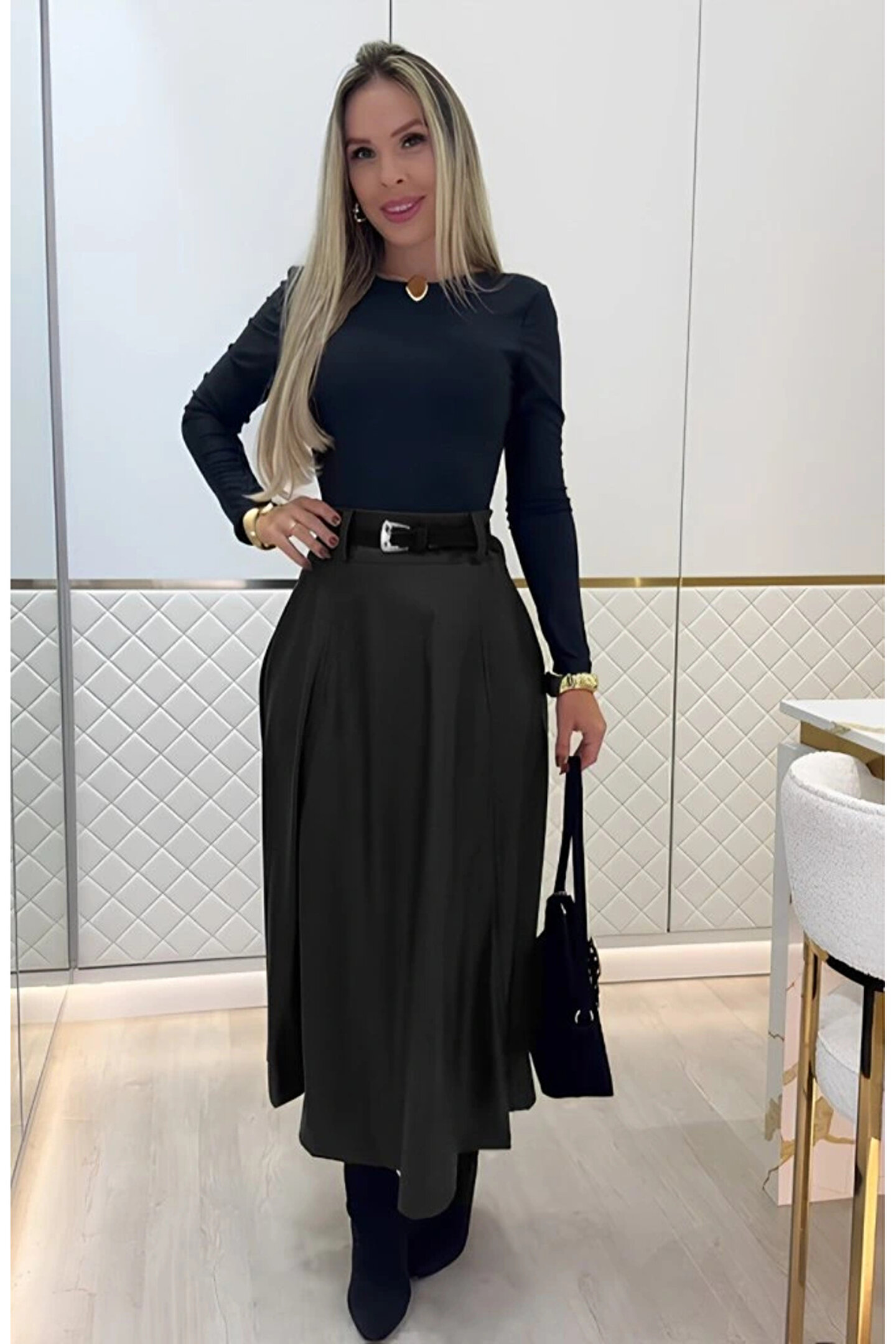 Kadın Yüksek Belli Maxi Deri Kemersiz Etek Stok Kodu: 174482