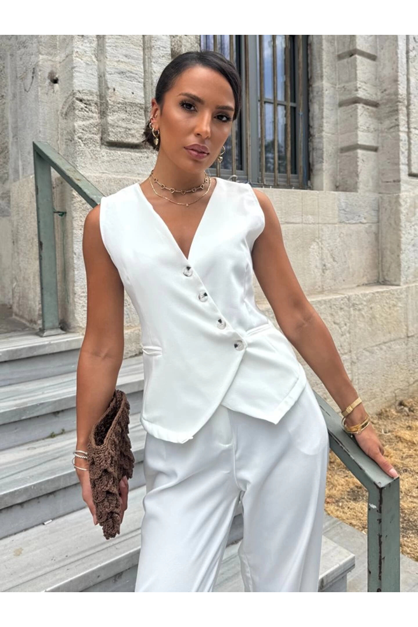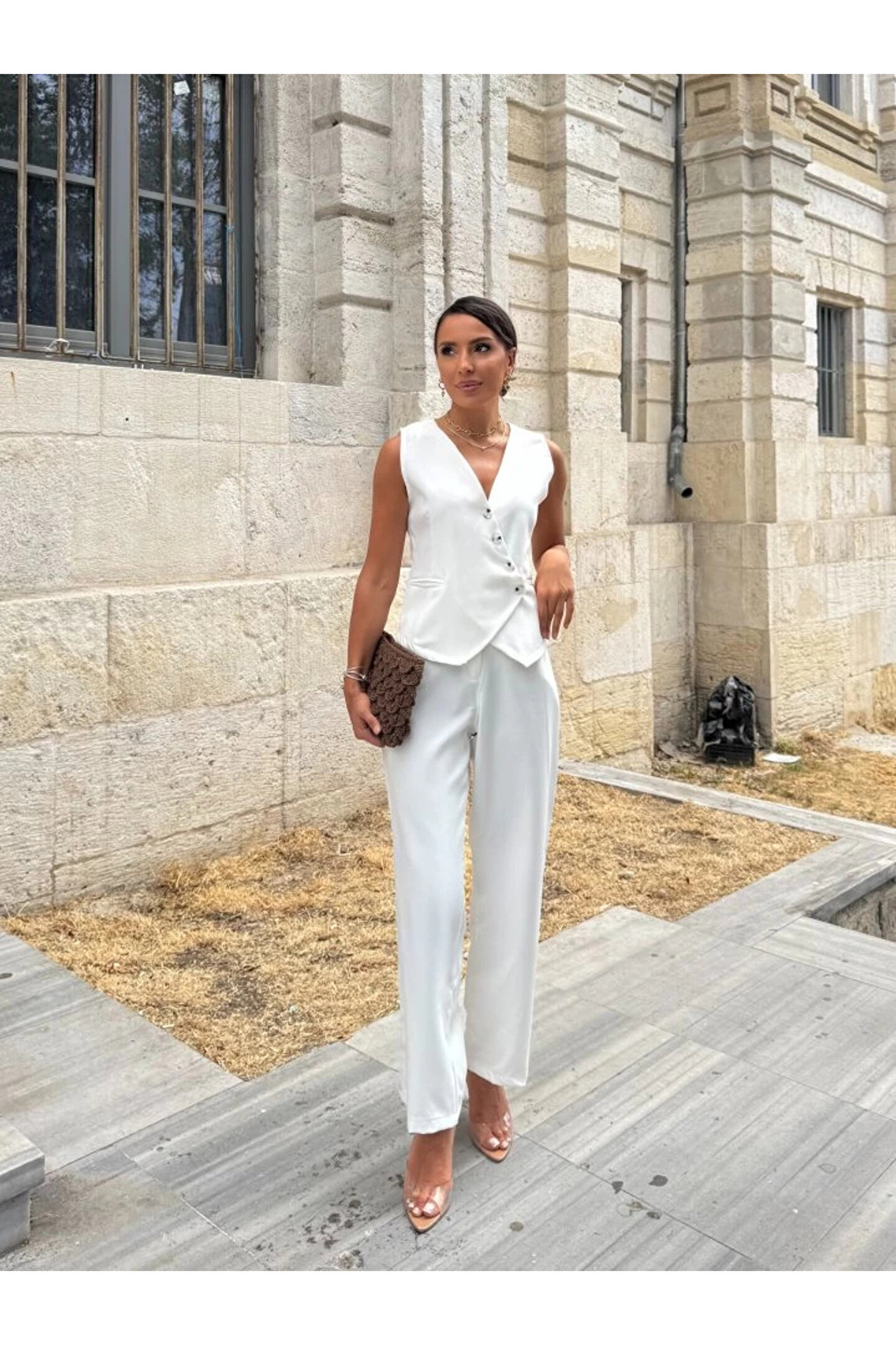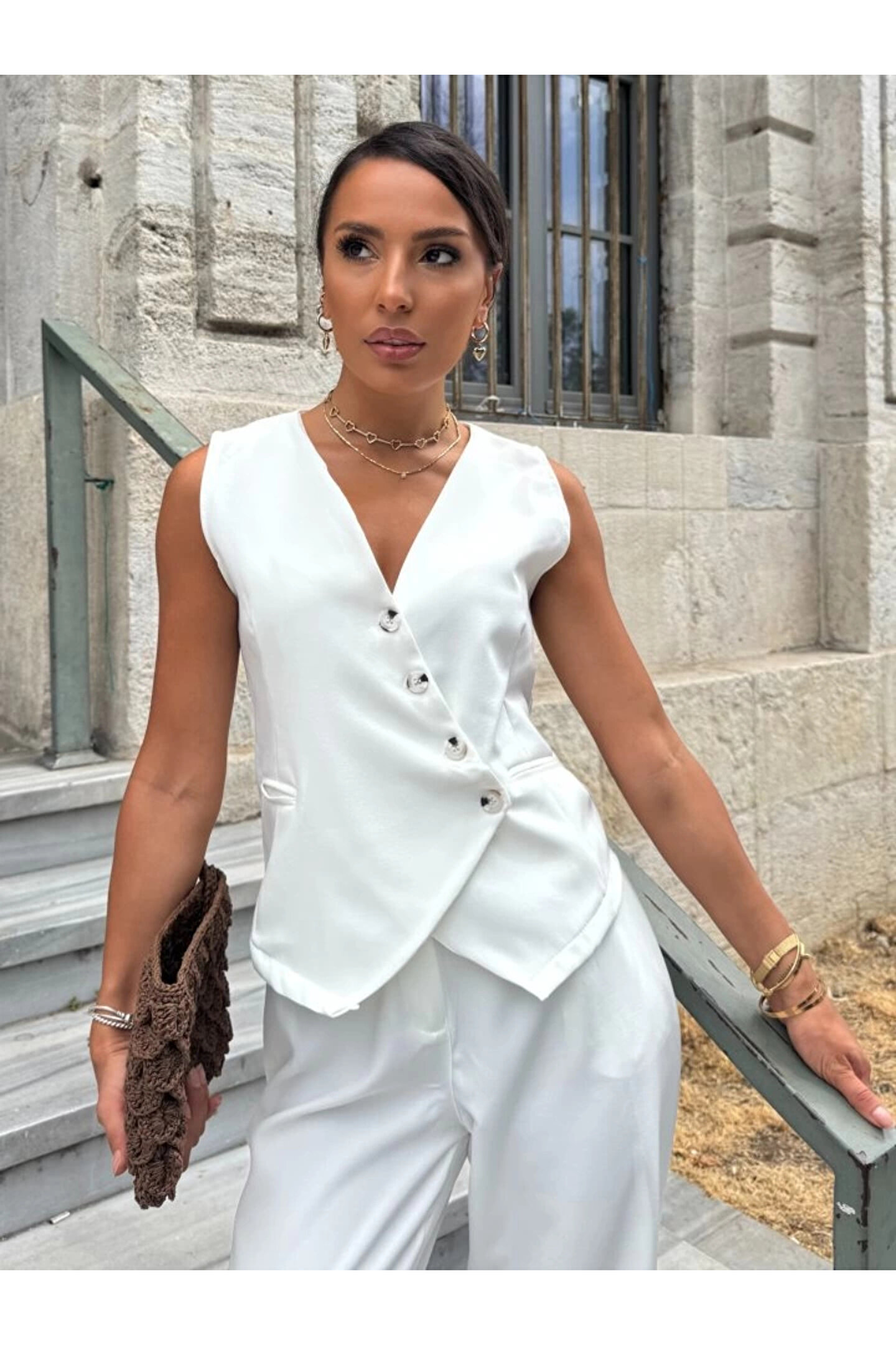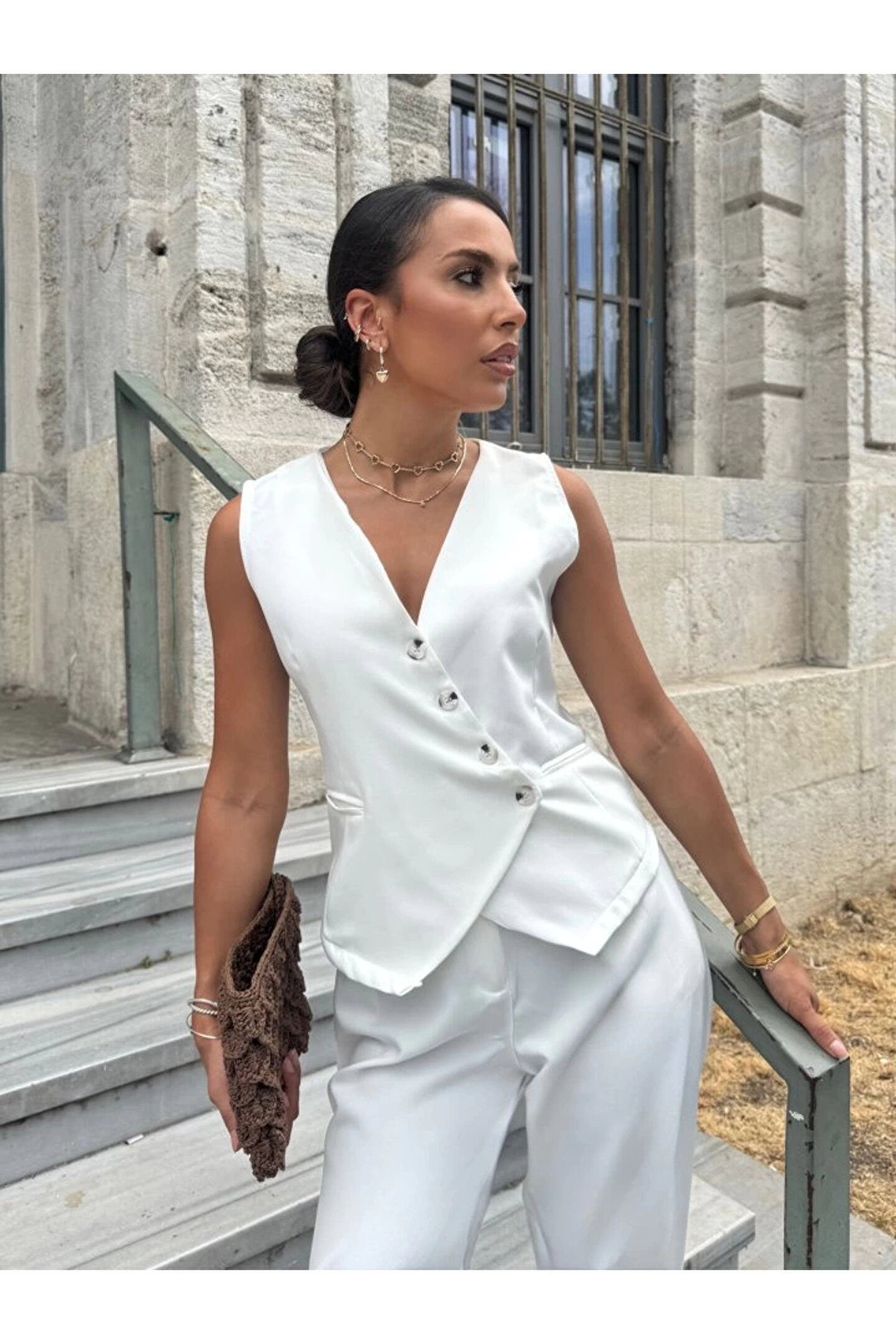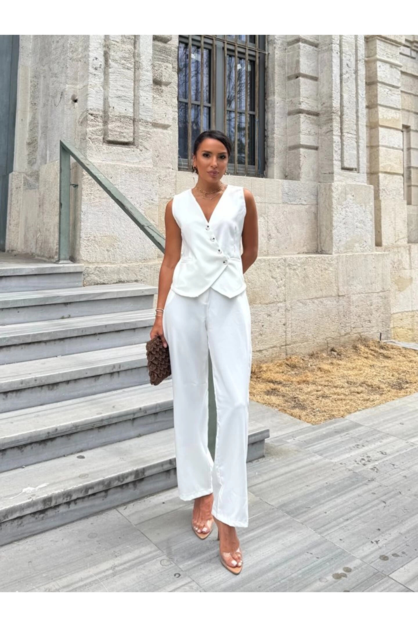 EDA COLLECTION MDB Kadın Sıfır Kollu çapraz V Yakalı önden Düğmeli Atlas Yelek Ve Pantolon Ikili Takım