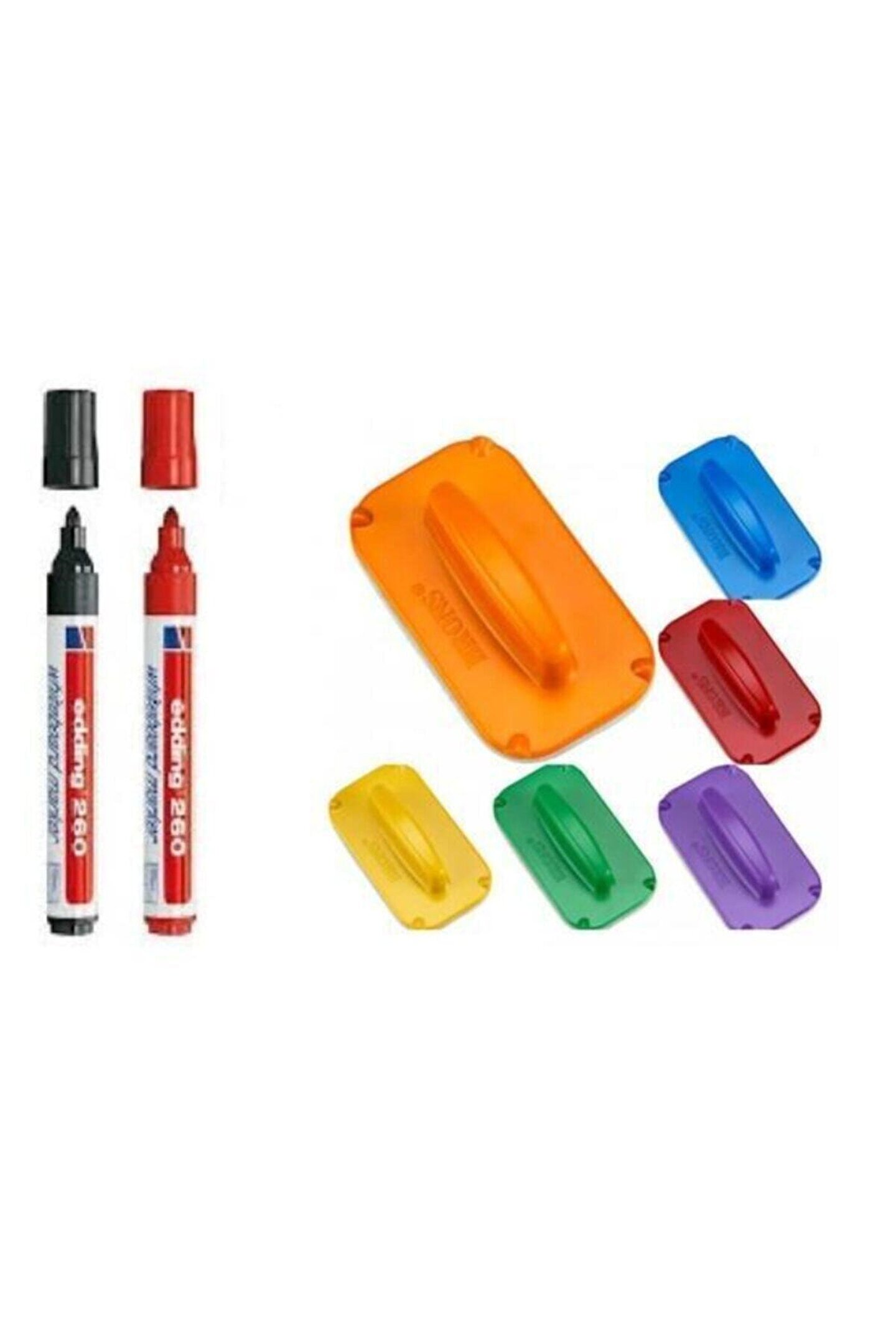 1 Adet Edding 260 Siyah Tahta Kalemi 1 Adet Edding 260 Kırmızı Tahta Kalemi 1 Adet Brons Tahta Silgi ( Stokta Olan Renk Gönderilecektir )