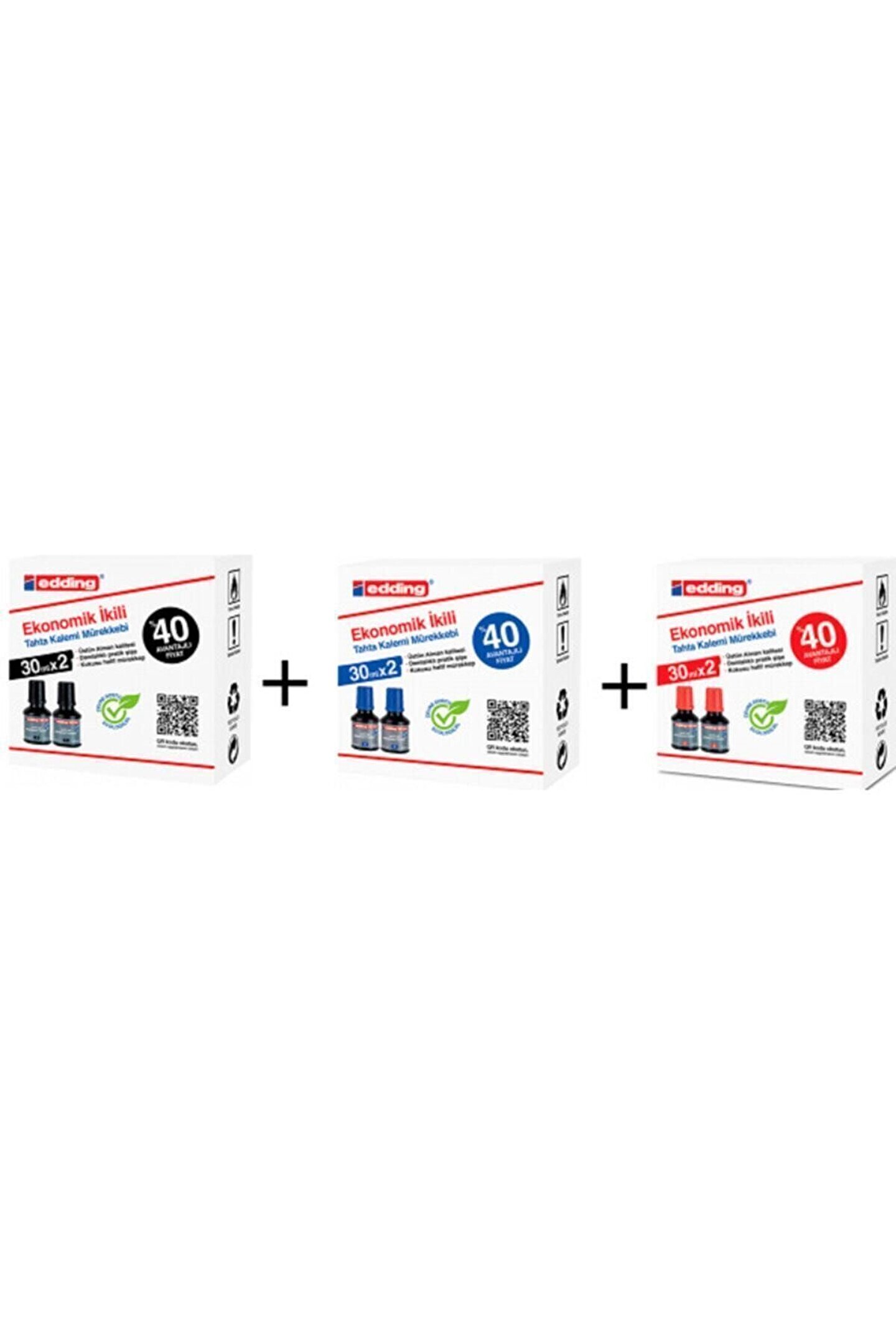 edding Tahta Kalemi Mürekkebi 30 Ml 2 Adet Siyah + 2 Adet Mavi + 2 Adet Kırmızı tkm