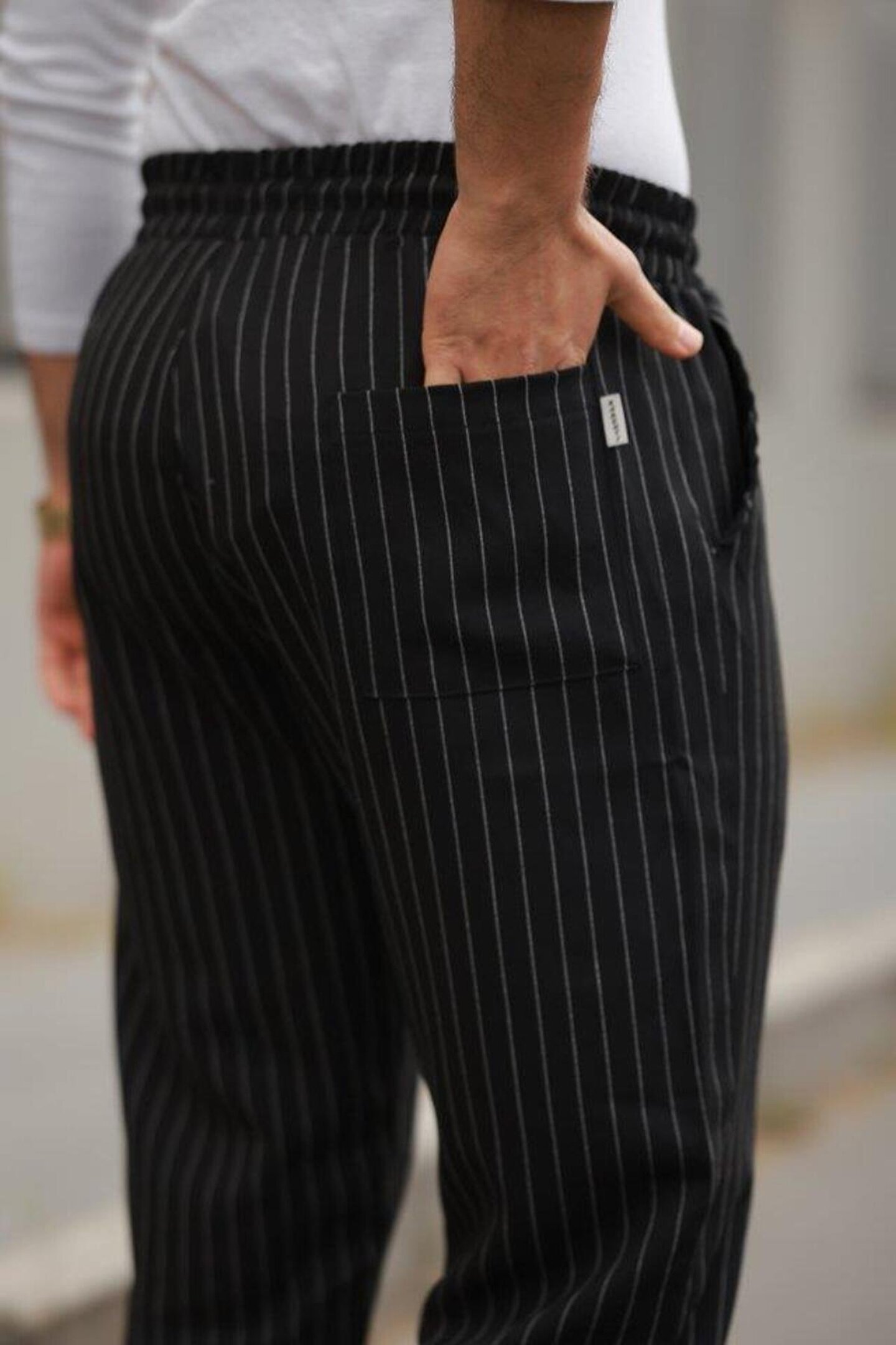 Erkek Beli Bağcıklı çizgili Pantolon