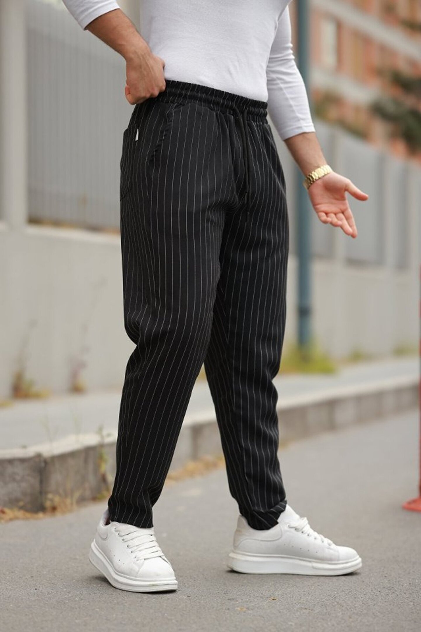 Edolika Gökyüzü Moda Erkek Beli Bağcıklı çizgili Pantolon
