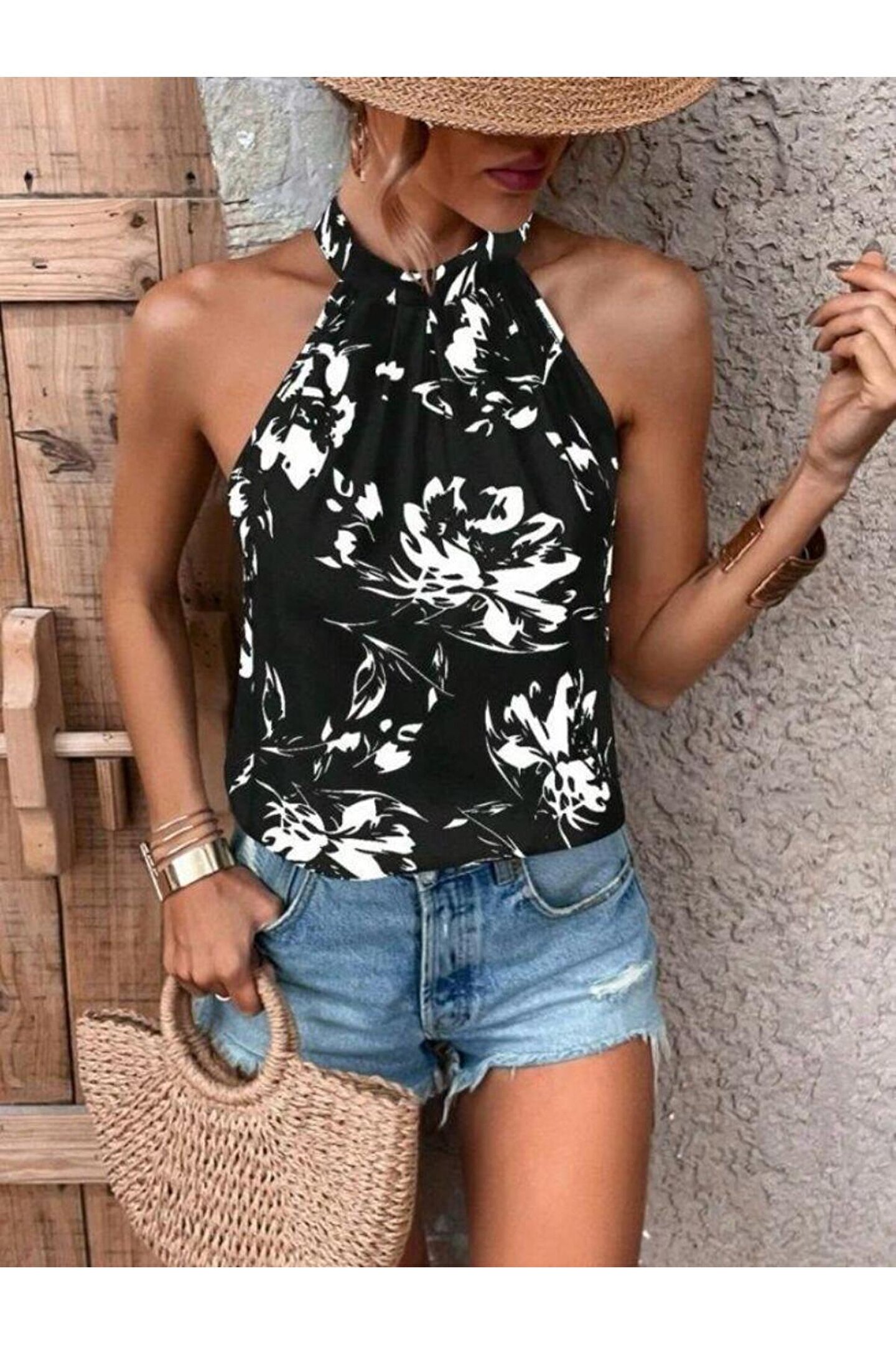 Kadın çiçek Desen Mikro Kumaş Bluz