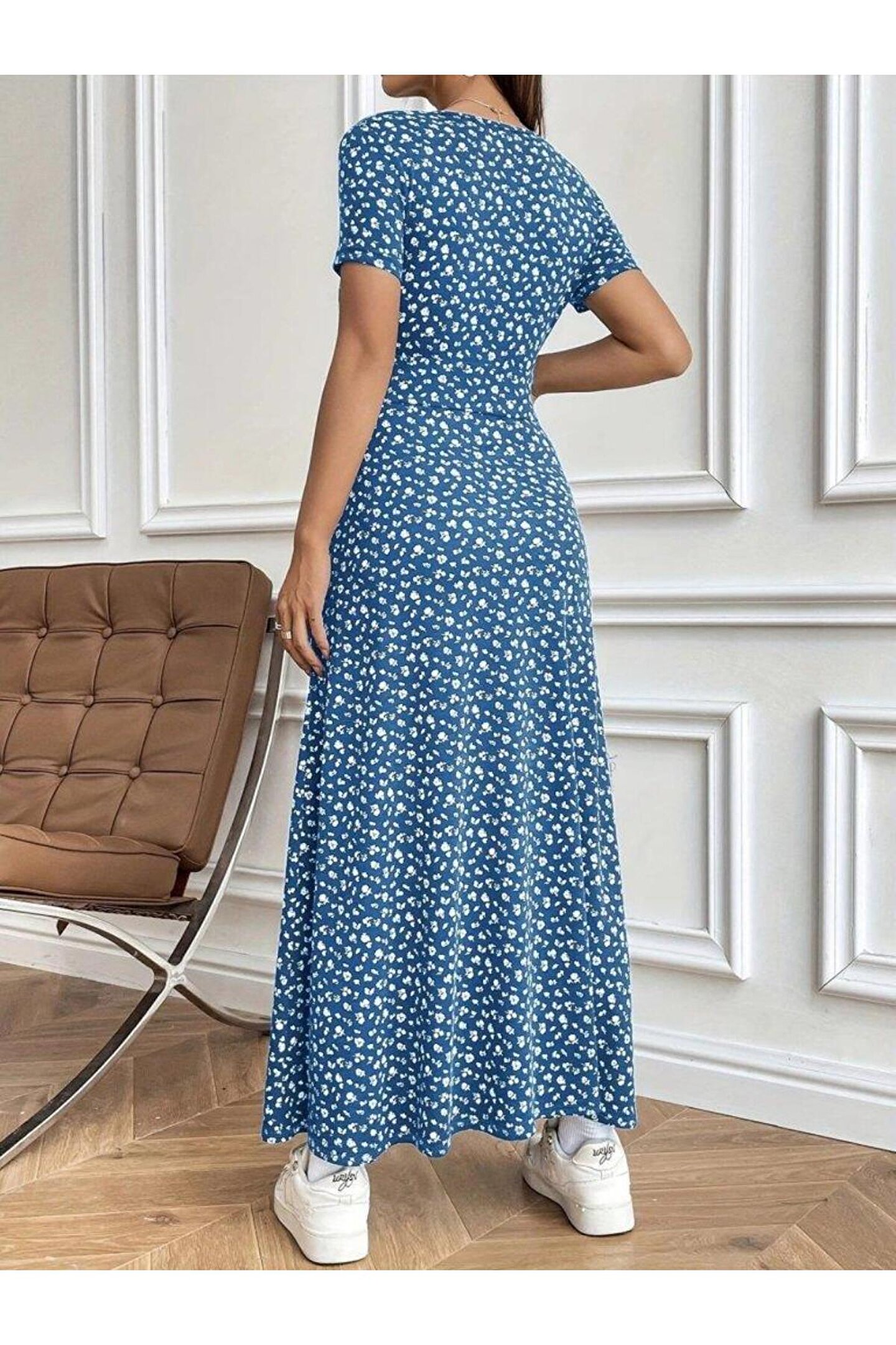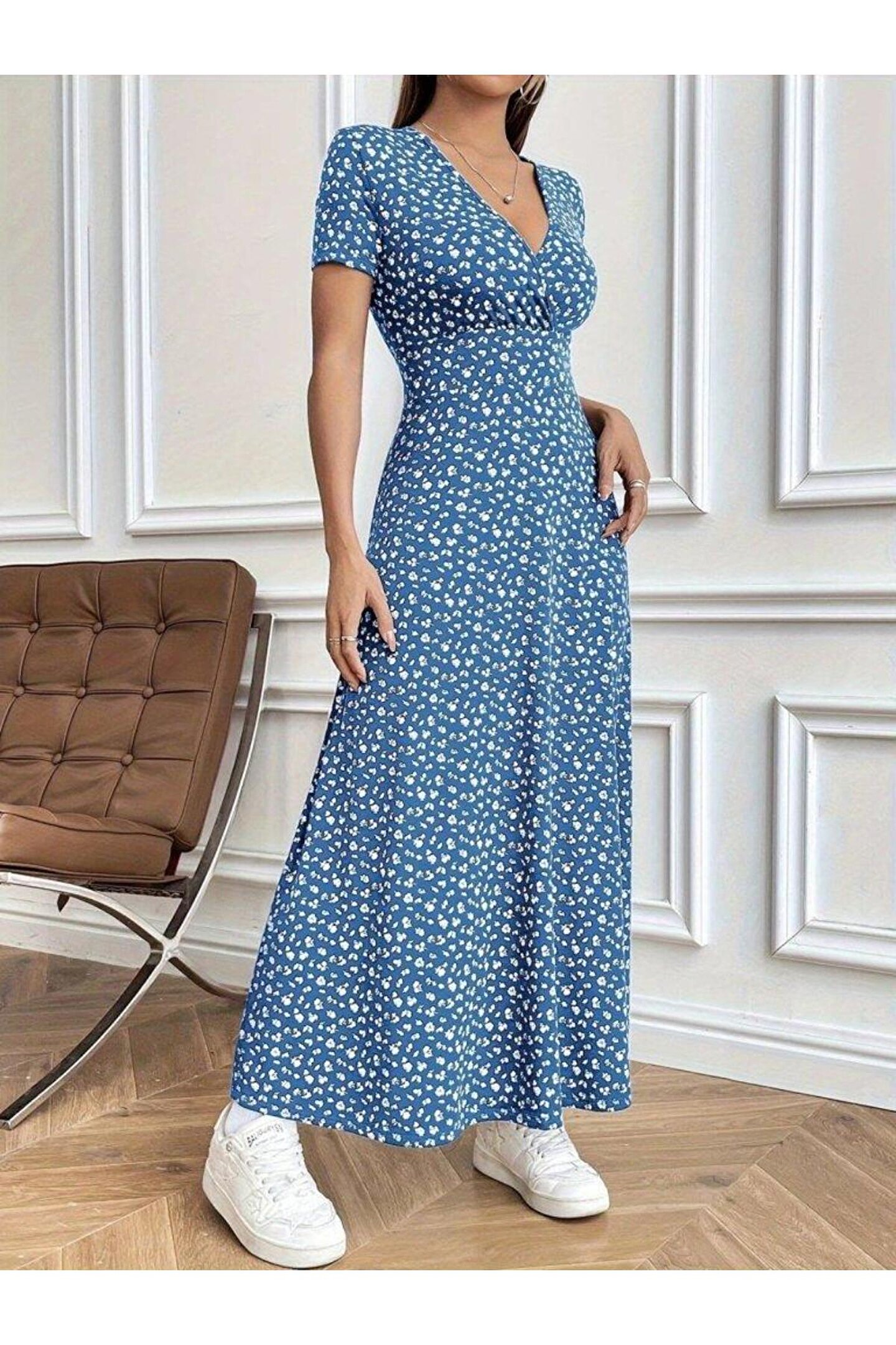 Kadın Kısa Kollu Kruvaze Yakalı çiçek Desenli Süprem Elbise