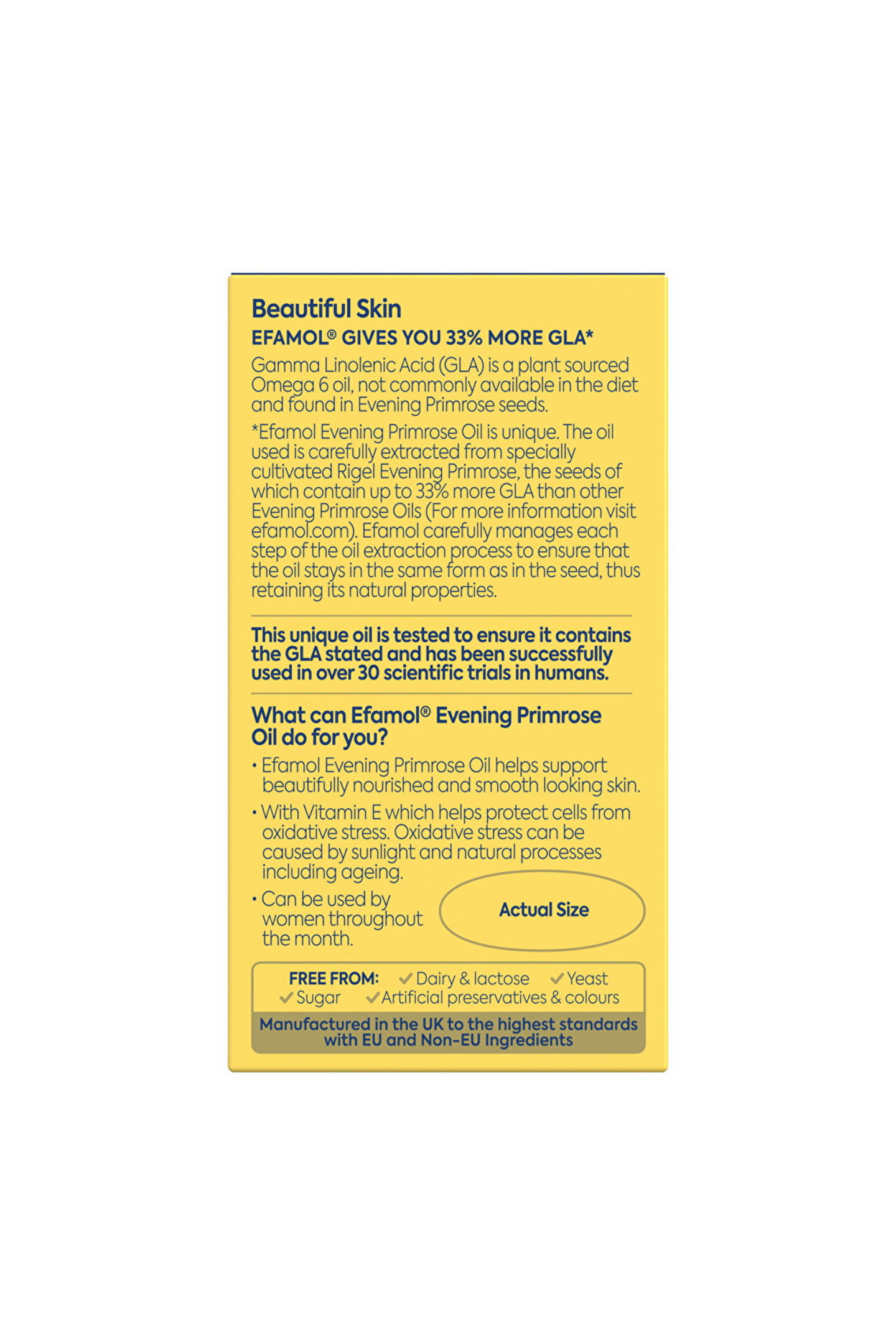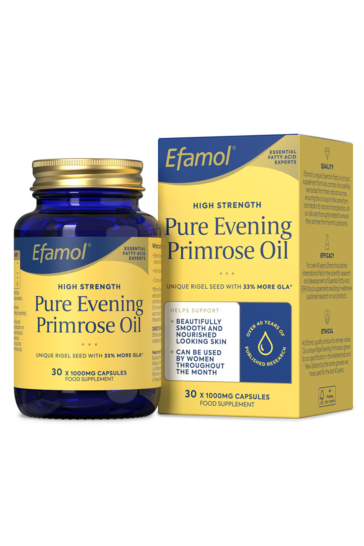 Efamol Pure Evening Primrose Oil 1000 mg Kapsül, dönemindeki kadınların bu süreci daha konforlu geçirmelerine yardımcı olduğu klinik olarak kanıtlanmış ayrıca kadınlarda sıcak basması, gece terlemesi gibi dönemi semptomlarının rahatlatılmasını ve hormonal dengeyi sağlamaya yardımcı olan doğal bir takviyedir.