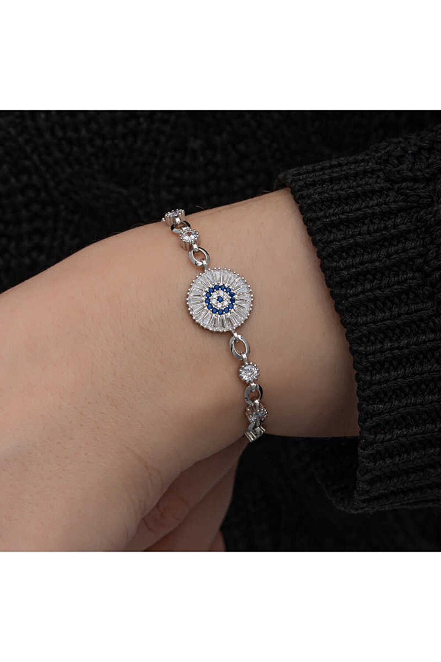 Samur Parti Parti Aksesuar & Kostüm 925 Ayar Gümüş Baget Taşlı Nazar Kadın Bileklik
