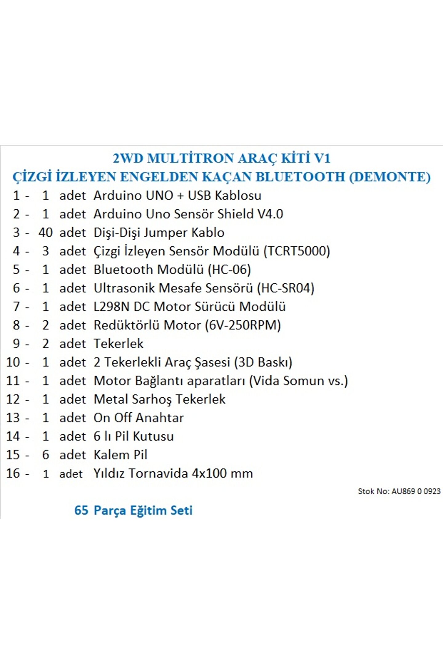 eğiteklab 2wd Multitron Araç Kiti V1çizgi Izleyen Engelden Kaçan Bluetooth (DEMONTE)