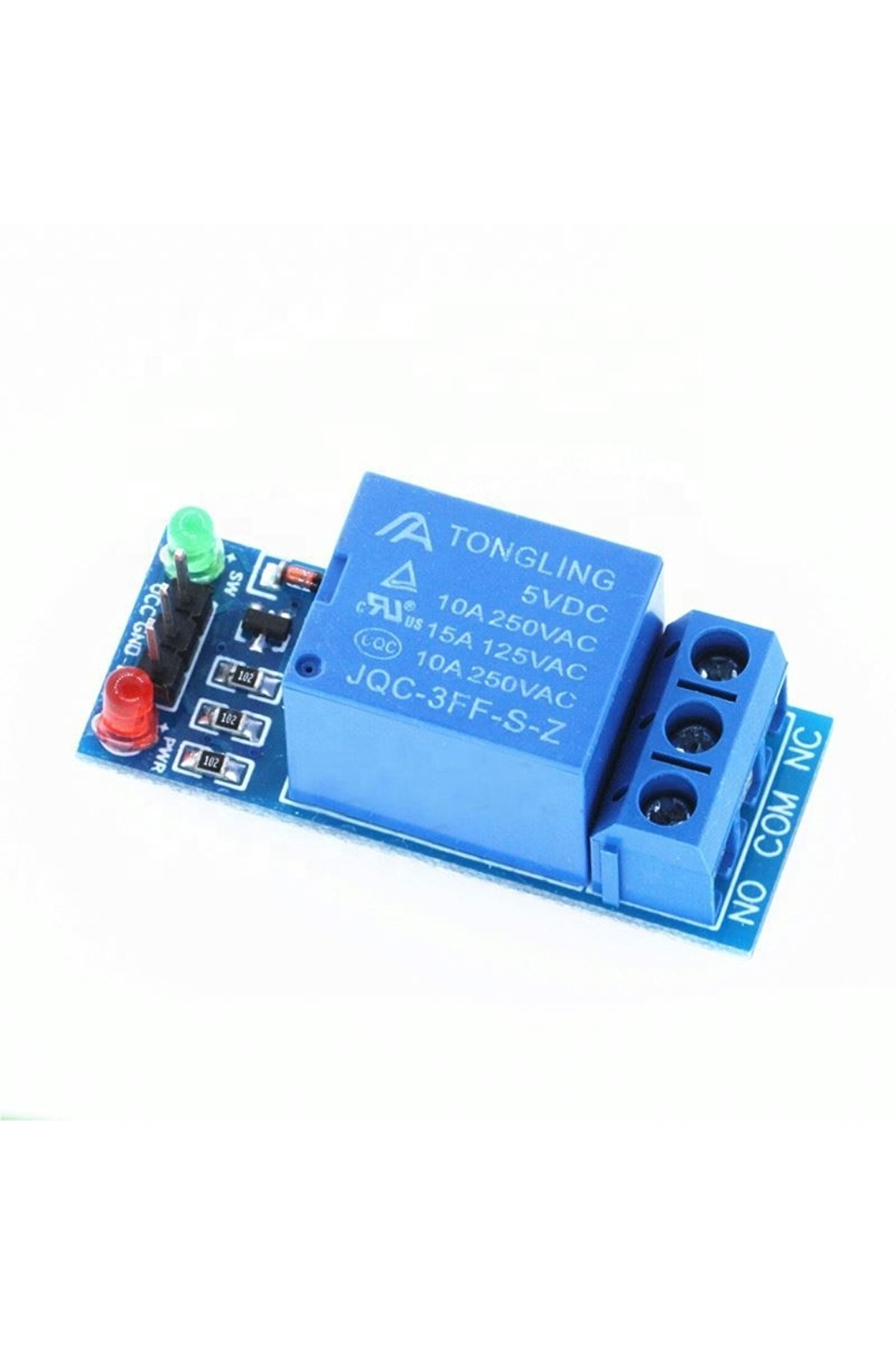 Tek Kanallı 5V Röle Modülü Tekli Röle Kartı 1 Kanal Arduino Relay Üzerinde bir adet röle bulunan bir modüldür. İki adet gösterge ledi bulunur. Kart üzerindeki röleyi kontrol etmeniz için 5 volt sinyal giriş pini bulunmaktadır. Buradan vereceğiniz sinyal ile rölenin anahtar konumunu ayarlayabilirsiniz. Böylelikle üzerinden hem ac hem dc akım geçirebilir. Mikrodenetleyeciden tetik sinyali sırasında 20mA"lik bir akım çekmektedir. Röle basit bir açma/kapama anahtarıdır. Giriş voltajı 5 Volt olduğunda çalışır, giriş voltajı 0 Volt olduğunda kapanır. Röle aynı zamanda izolasyon sağlayan elektromekanik bir komponenttir. Kontrol (geliştirme) kartları ve shiled'ın bağlı olduğu düşük güç tarafıyla, röle modülünün çalıştığı yüksek güç tarafında, röle yoluyla bağlantı koparılmıştır. Bu şekilde yüksek voltaj/akım koruması sağlanmış olur. Röle lojik 0(0V) ile tetiklenir. ÖZELLİKLER: 30VDC veya 220VAC gerilimde 10A"e kadar akımı anahtarlayabilmektedir.; 5V ile 1'li role kontrol kartının kontakları kontrol edilebilir.; Gövde yapısı kimyasal ortamlara veya yüksek sıcaklığa dayanabilecek şekildedir.; Kablo karmaşası ve lehimleme ihtiyacı olmadan rahat çalışma olanağı sağlar.; Ürün üzerinde 3 bağlantı terminali mevcuttur: COM(Ortak uç),; NC (Normalde Kapalı),; NO (Normalde Açık). Bu terminaller tetikleme durumunda kısa devre veya açık devre olması istenilen durumlarda kullanılabilmesi için dışarı alınmıştır.; ; Arduino kartlarla, ve üzerinde PIC, ARM, MSP430 MCU blulunan diğer kartlarla kolayca kullanılabilir.; Çeşitli hobi, endüstriyel ve robotik projelerde sıklıkla kullanılır.; Röle için kontrol ledleri bulunmaktadır. İletme ve kesim durumlarının bilgisini üzerindeki bir ledleri yakarak gösterir.; Bu ürünle tek bir lambayı , tek bir motoru ve ya yüksek voltaj ve akım gerektiren uygulamalarınızı yapabilirsiniz.; Kolay kullanımlı pratik bir üründür.; TEKNİK ÖZELLİKLER: Bobin sürme akımı: 20mA,; Çıkış sayısı: 1 kanal,; Kontrol voltajı: 5V TTL düzeyi,; Maksimum anahtarlama voltajı: 250VAC 30VDC,; Anahtarlama kapasitesi: 7A 28VDC, 10A 125VAC, 7A 240VAC [rezistif yük] ; 3A 120VAC,3A 28VDC [indüktif yük cosfi=0,4],; Kontak Mataryeli:AgCdO,; Kontak direnci: 100mohm,; Anahtarlama süresi:10ms maksimum,; Bırakma süresi: 5ms maksimum,; Maksimum ON/OFF anahtarlama: dakikada 30 kez (elektriksel olarak),; Çalışma sıcaklığı: -25°C ~ 70°C,; Ömür beklentisi: 100.000 kez (elektriksel olarak).;