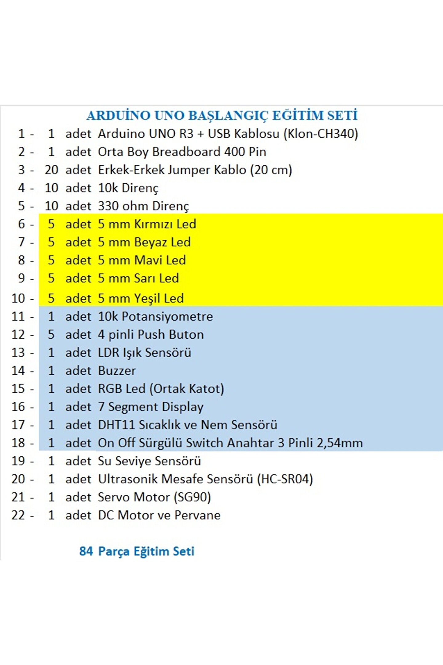 ARDUİNO UNO BAŞLANGIÇ EĞİTİM SETİ1 - 1 adet Arduino UNO R3 + USB Kablosu (Klon-CH340)