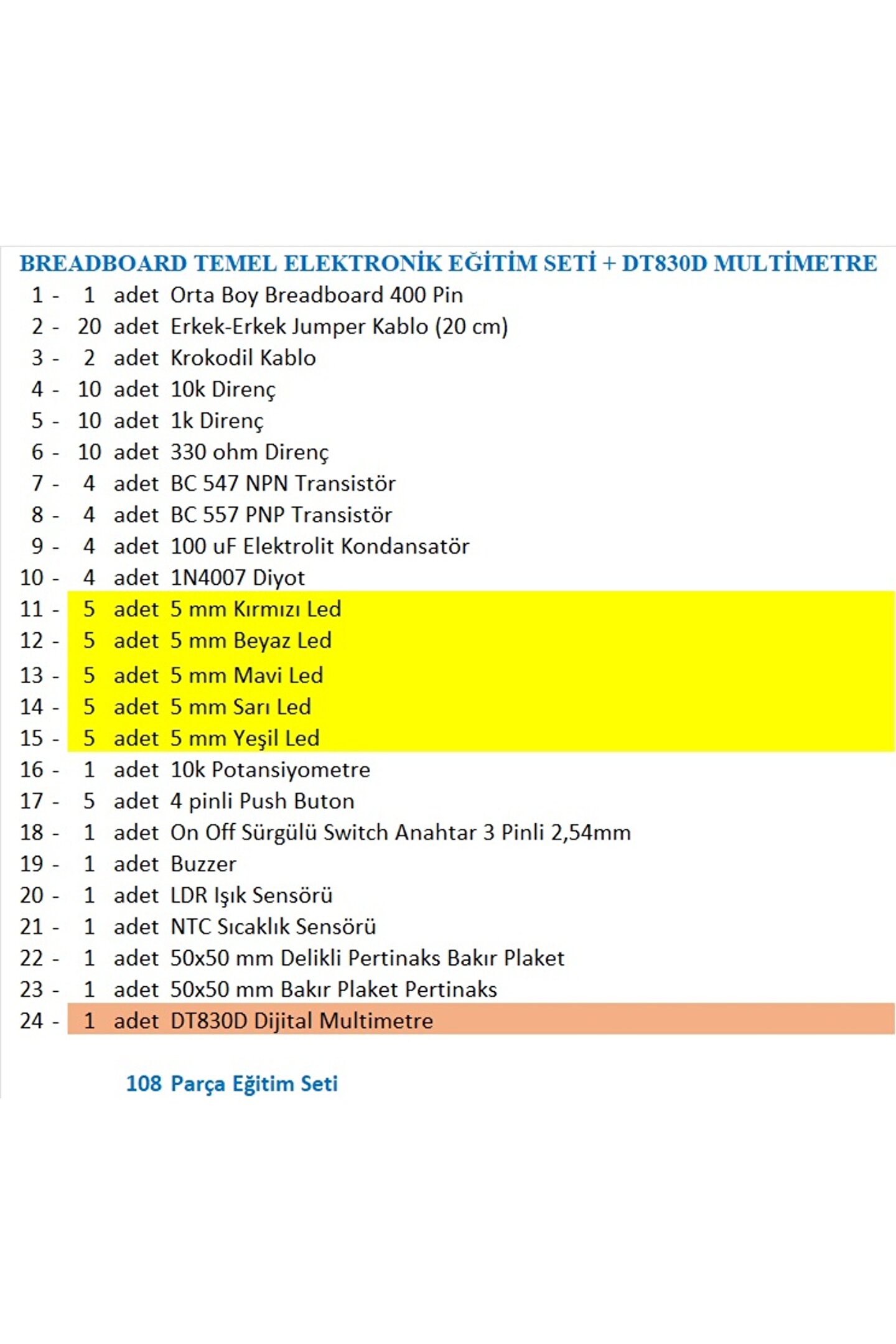BREADBOARD TEMEL ELEKTRONİK EĞİTİM SETİ + DT830D MULTİMETRE