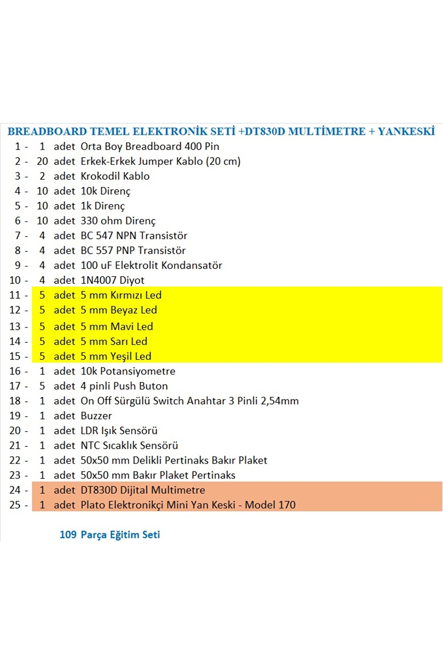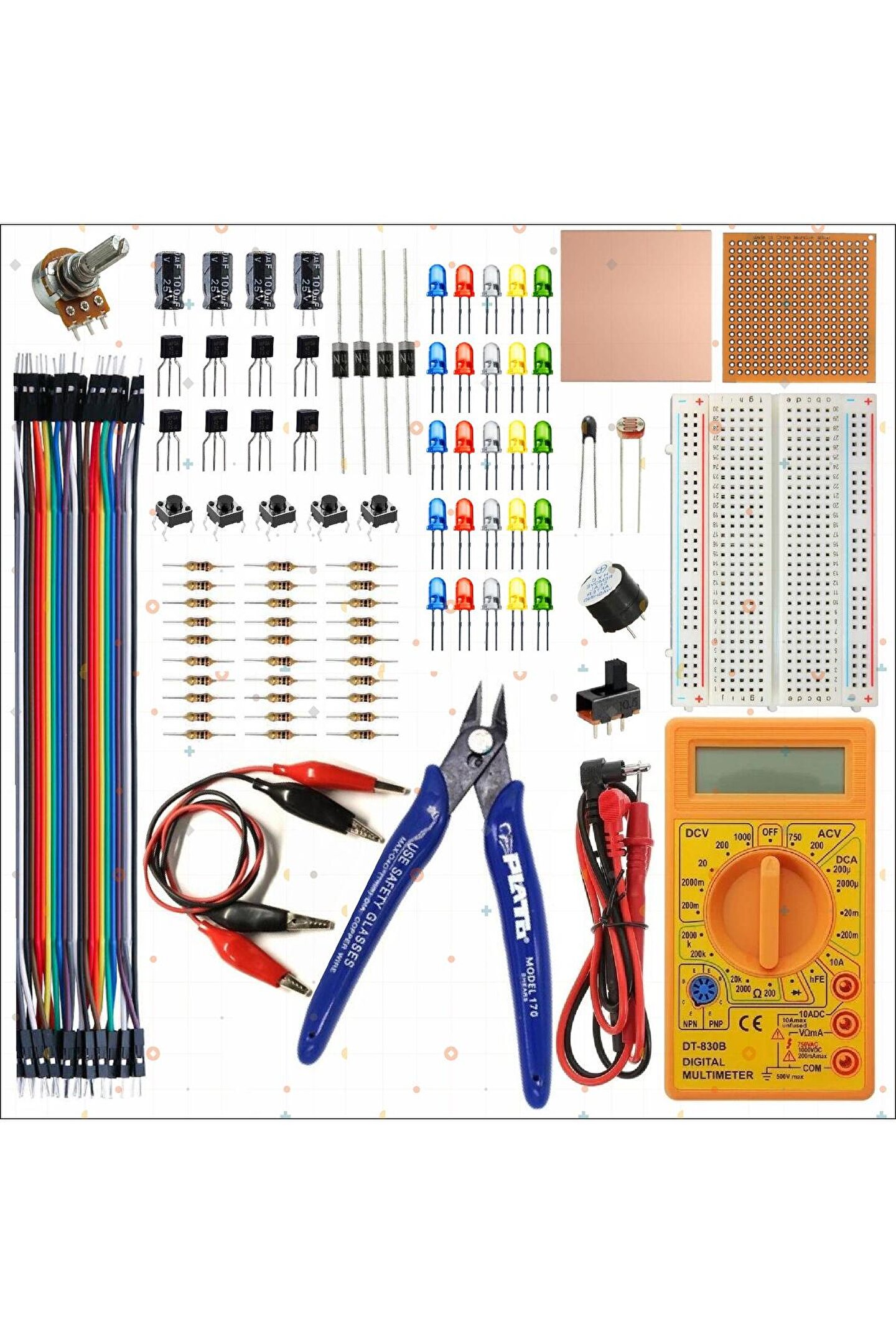 BREADBOARD TEMEL ELEKTRONİK SETİ +DT830D MULTİMETRE + YANKESKİ