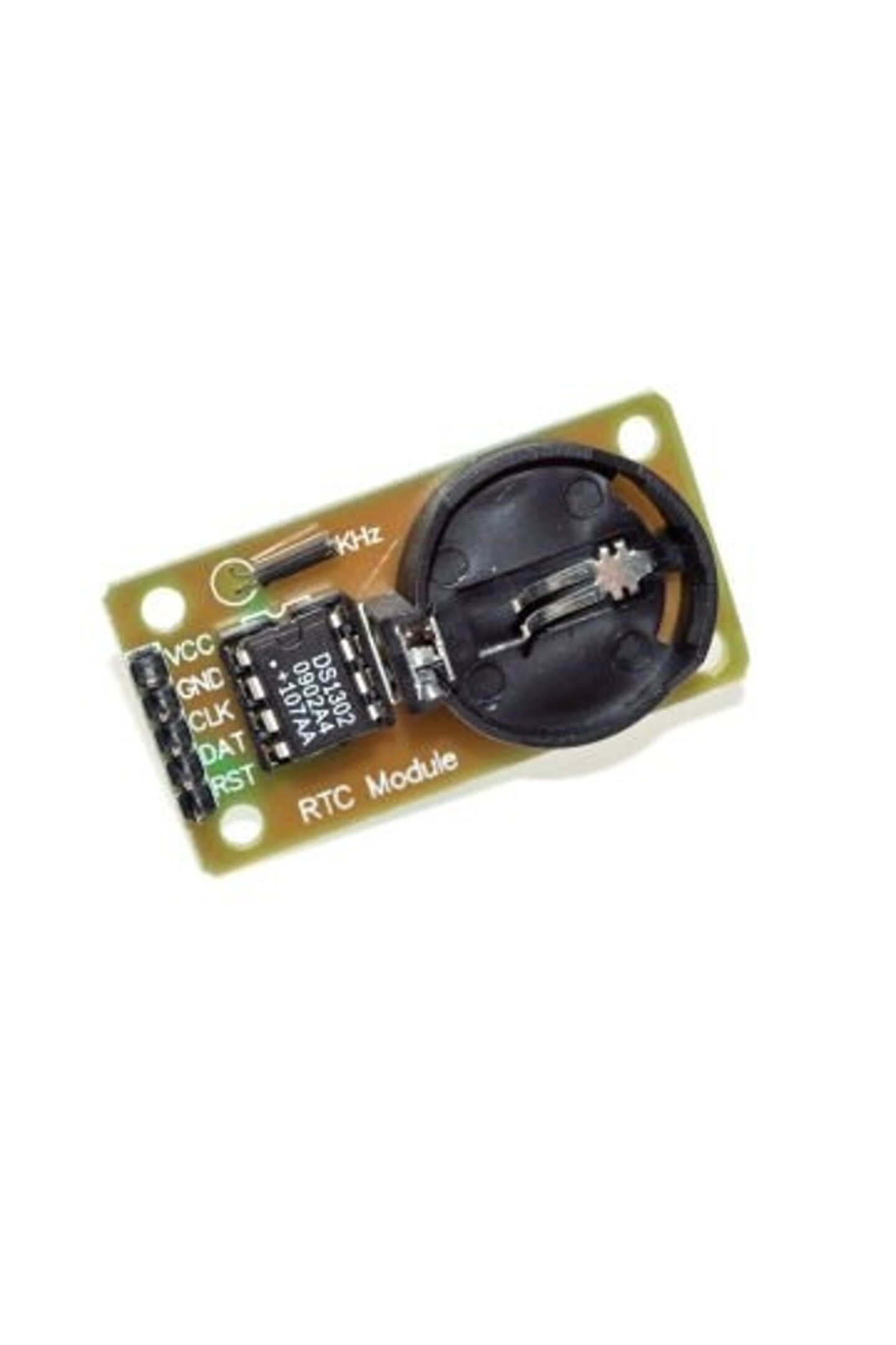 RTC Modül DS1302 gerçek zamanlı saat devresi entegresi olup saat bilgisini anlık ve sürekli olarak okuyabileceğiniz çok kullanışlı bir modüldür. ; Kart üzerinde CR2032 pil konnektörü bulunur. ; CR2032 pil ürüne dahil değildir. ; DS1302 entegresi saniye, dakika, saat, gün, ay ve yıl bilgisini sürekli olarak içinde tutabilen bir RTC entegresidir. ; Seri olarak SCLK pini üzerinden sürekli olarak çıkış verebilen kart başta Arduino olmak üzere bir çok mikrodenetleyeci sistemi ile rahatlıkla kontrol edilebilmektedir.;