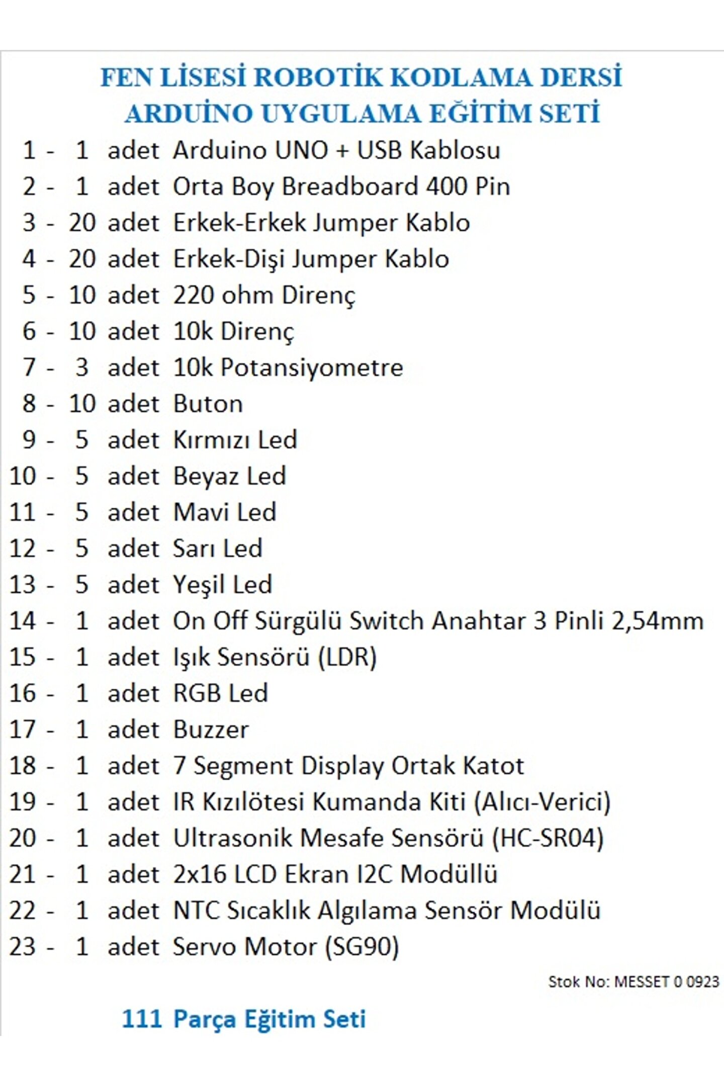 FEN LİSESİ ROBOTİK KODLAMA DERSİ ARDUİNO UYGULAMA EĞİTİM SETİ