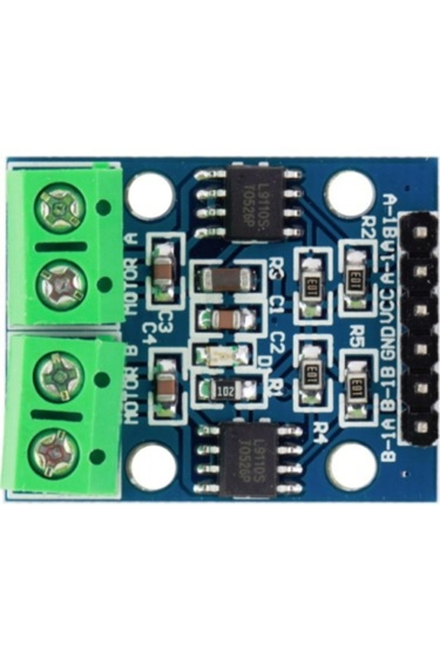 L9110S Çift Motor Sürücü Kartı - DC/STEP Motor Sürücü L9110 çift motor sürücü kartı ve ufak boyutlarda olan oldukça kullanışlı mini DC motor sürücü kartıdır. Kart üzerinde L9110 motor sürücü entegresi bulunmaktadır. 2.5-12V arası giriş geriliminde çalışan sürücü kartı ile her iki yönde iki ayrı DC motor veya 4 kablolu 2 fazlı step motor kontrol edilebilir. L9110S Çift Motor Sürücü Kartı Teknik Özellikleri: Voltaj Aralığı: 2,5 - 12V; Kanal Sayısı: 2; Kanal Başına Sürekli Maksimum Akım;