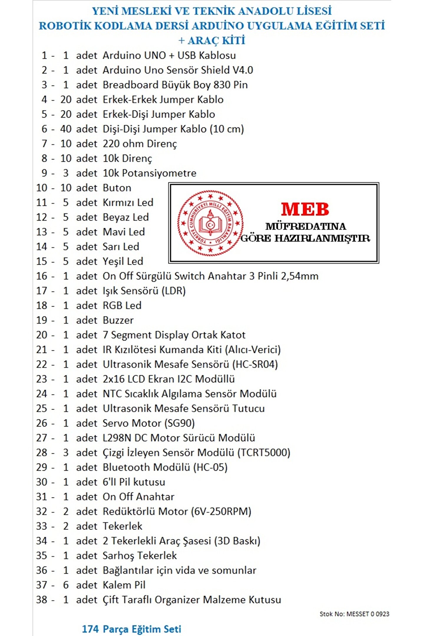 Bu set Milli Eğitim Bakanlığı'nın yayınladığı Mesleki ve Teknik Anadolu Lisesi Robotik Kodlama Dersi Müfredatına uygun olarak hazırlanmıştır.