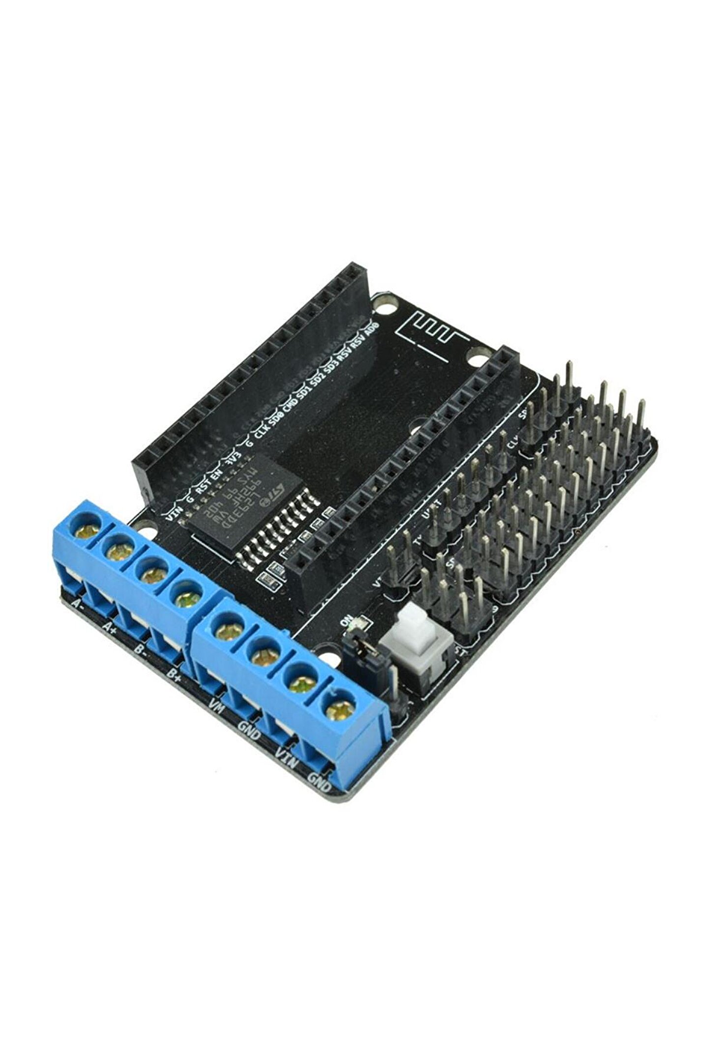 L293D Nodemcu Motor Shield 2 adet DC Motoru yada 1 adet step motoru sürebilmektedir. Sürücü motor akımı 1.2 Ampere kadar çıkabilmektedir. Nodemcu ESP8266 WIFI Kartlar ile beraber kullanılarak WIFI Kontrollü araba yada motor kullandığınız her bir uygulamada kullanılabilmektedir. L293D Nodemcu Motor Shield üzerinde bulunan VM ve Vin pinlerini kısa devre yapıldığı zaman tek bir güç girişinden hem motor gerilimi hem de kontrol gerilimi sağlanabilmektedir. UYARI; Tek bir güç kaynağı üzerinden besleme yapılmak istenildiği zaman VM ve Vin pinleri kısa devre yapılmalıdır. Bu işlem yapıldığı zaman maksimum 10Volta kadar desteklemektedir. Daha yüksek voltaj değerleri L293D Nodemcu Shield kartınıza zarar verebilmektedir. Özellikler Ayrı olarak sağlanabilen 4.5V ile 36V arası motor gerilimi; 4.5V ile 9V arası kontrol gerilimi (10V Maks.); Tek güç kaynağı üzerinden hem motor hemde kontrol gerilimi sağlama imkanı (Maksimum 10V); Lojik Çalışma akımı Iss: ?60mA (Vi = L), ?22mA (Vi = H);; Maksimum motor sürücü akımı 1.2A; Kontrol sinyali giriş voltajı 2.3V<=VIH<=VIN (high), -0.3V<=VIL<=1.5V (low); -25 °C ile 125°C arası çalışma sıcaklığı; H bridge sürücü tipi; 58x43 mm Boyutlarında;