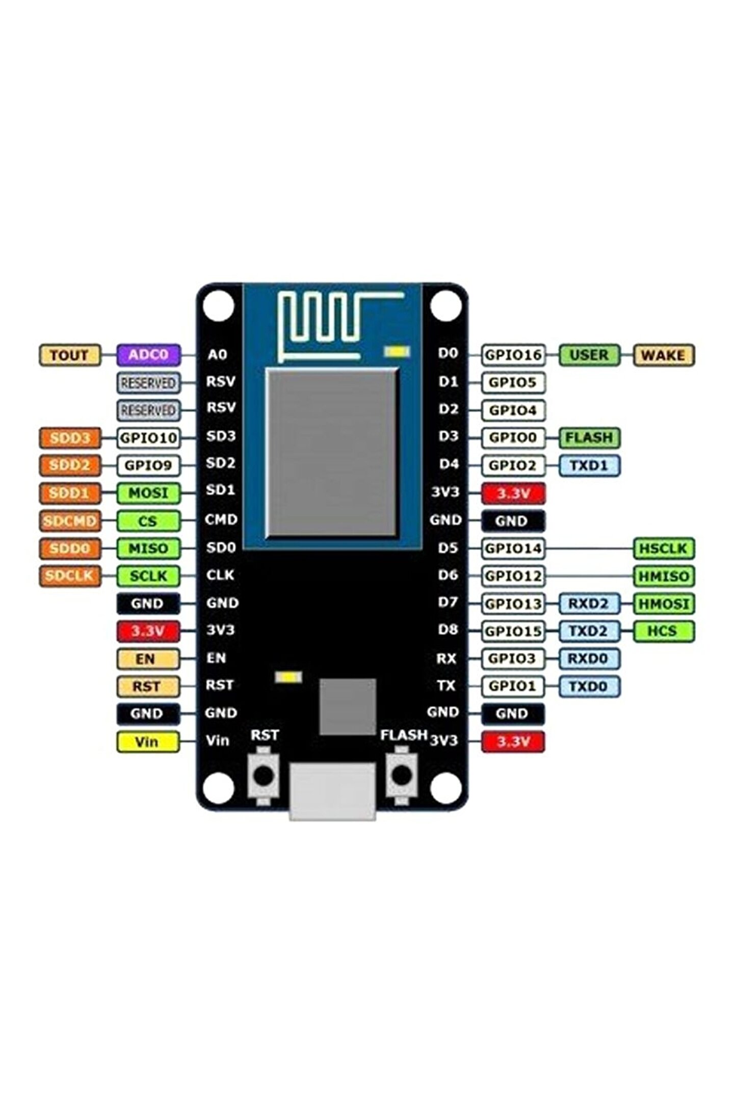 NodeMCU V3 ESP8266 ESP-12E Geliştirme Kartı - CH340 NodeMCU V3 ESP8266 ESP-12E Geliştirme Kartı, IoT (Nesnelerin İnterneti) projeleri ve akıllı cihaz geliştirmek isteyenler için mükemmel bir seçenektir. Bu geliştirme kartı, ESP8266 ESP-12E Wi-Fi modülüne dayanarak güçlü ve kompakt bir platform sunar. CH340 entegre USB-Serial dönüştürücüsü sayesinde kolayca bilgisayarınıza bağlayabilirsiniz. NodeMCU V3, geniş ve etkili bir geliştirme ortamı sağlar. Arduino IDE veya MicroPython gibi popüler programlama dillerini kullanarak hızlı bir şekilde projeler geliştirebilirsiniz. Entegre Wi-Fi desteği, cihazınızın internete bağlanmasını ve veri iletişimini kolaylaştırır. NodeMCU esp8266 geliştirme kartı, çeşitli sensörler, motorlar, röleler ve diğer bileşenlerle uyumlu çalışabilir. GPIO pinleri sayesinde projelerinizi özelleştirebilir ve genişletilebilirsiniz. Dahili voltaj regülatörü, stabil güç kaynağı sağlar ve projelerinizin daha güvenilir bir şekilde çalışmasını sağlar. NodeMCU V3 ESP8266 ESP-12E Geliştirme Kartı, akıllı ev uygulamaları, uzaktan izleme sistemleri, sensör ağları, otonom cihazlar ve daha fazlası için ideal bir platform sunar. Kullanımı kolay arayüzü ve genişletilebilir yapısıyla projelerinizi gerçekleştirmek artık daha basit. LoLin, üzerinde NodeMCU firmware yüklü ESP8266 WiFi modül barındıran bir geliştirme kartıdır. ESP8266 SDK'sı kullanılarak geliştirildiğinden, ekstradan bir mikrokontrolcüye ihtiyaç duymadan GPIO, PWM, IIC, 1-Wire ve ADC bağlantılarını destekler. Üzerinde CH340 USB - Seri dönüştürücü entegre bulunur. NodeMCU V3 LoLin ESP8266 Geliştirme Kartı Teknik Özellikleri: ESP8266 SDK tabanlı; eLua core (Lua 5.1.4); lua-cjson destekli; spiffs dosya sistemi; json, file, timer, pwm, i2c, spi, 1-wire, net, mqtt, coap, gpio, wifi, adc, uart ve system api destekler; Ürün Boyutları: 2,9 x 5,7 cm;