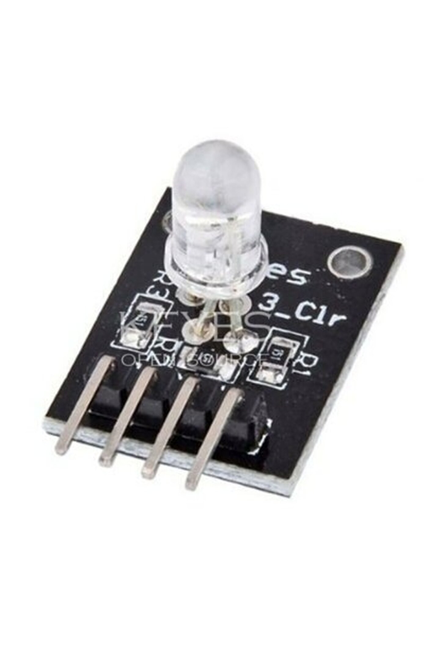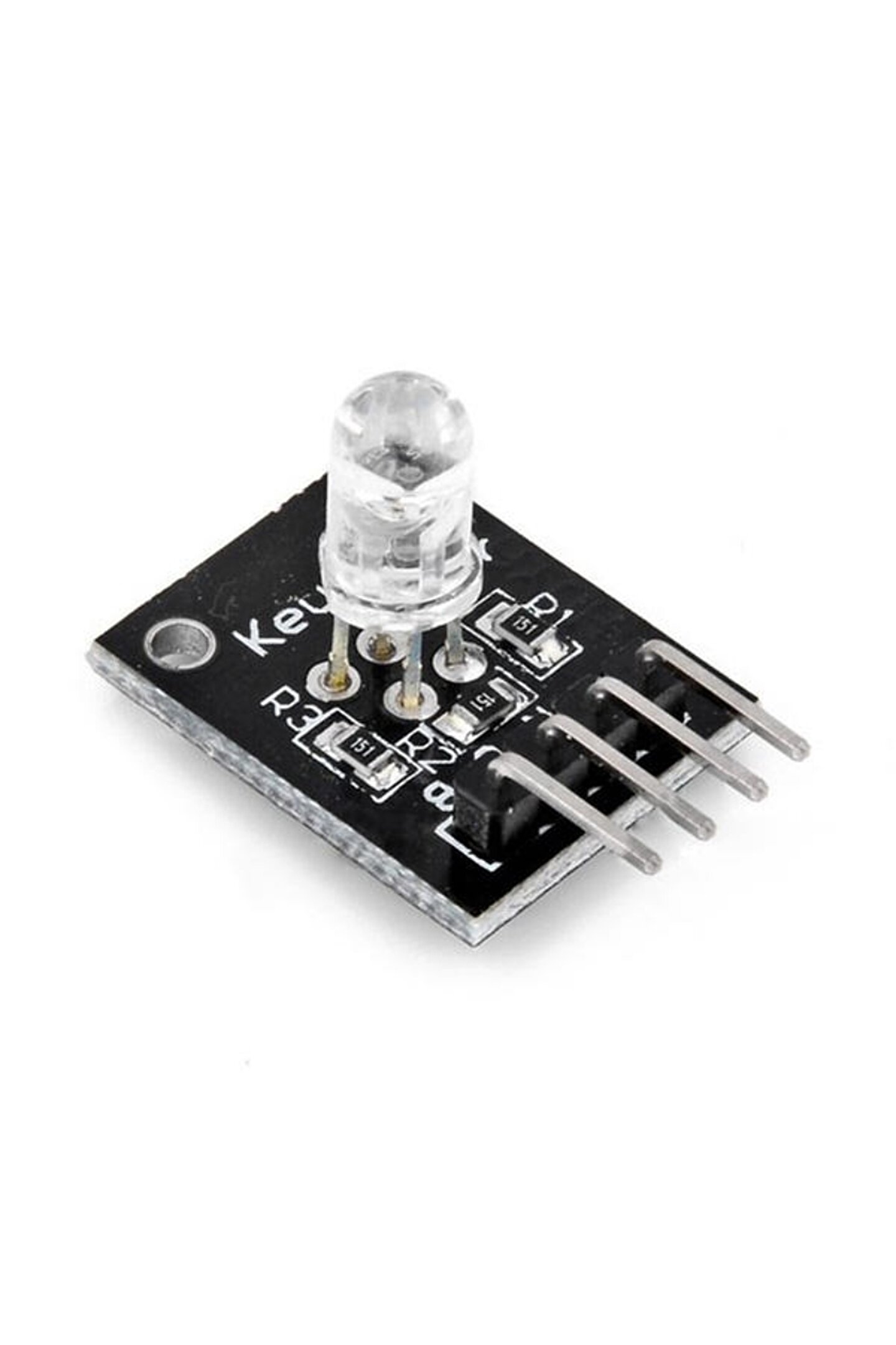 3 renkli 5mm'lik bu RGB LED modülü bütün renkleri ortaya çıkarabilmeniz için tasarlanmış bir modüldür.; Başta kırmızı, yeşil ve mavi ana renkler bununla beraber bu renklerin karışımı ile tüm renkleri yakabilmektesiniz.; Oldukça kolay ve pratik ve bir kullanımı olan bu modülü, başta Arduino olmak üzere bir çok mikrodenetleyici kartı ile rahatlıkla kullanabilirsiniz.; Kart üzerindeki RGB 5mm'liktir.; - ucuna toprak, diğer uçlar + voltaj verilerek ledler yakılır.; PWM ile R,G ve B pinleri belli oranlarda yakılarak istenilen renk tonu elde edilebilir.